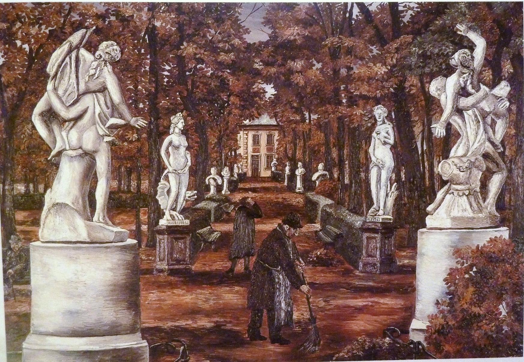 2- «Опустевший парк», 1984г., х.м., 130х170 см., Форум международного искусства Людвиг, Аахен. 3- «Дворцовая аллея»,1984г.,х.м. 120х140 см., Форум международного искусства Людвиг, Аахен. 4- «Птицы», 1990г., х.м., 140х150 см., Китайский национальный музей изобразительных искусств. 5- «Птицы», 1999г., х.м., 60х50 см.; «Дерево», 1999г., х.м., 60х50 см.; Галерея современного искусства « Палацо Форти», Верона. 7- «Ужин», 1990г., х.м., 120х120 см.,Музей Соломона Р.Гуггенхейма, Нью-Йорк. 8- « Букет роз», 1981г., х.м., 116х92 см., Государственный Русский музей, Санкт- Петербург. 9- «Петродворец», 1986г., х.м., 97х89 см., Монреальский музей изобразительных искусств. 10- «Мальчик», 2000г.,х.м.,72х55 см., Еврейский музей, Нью-Йорк. |