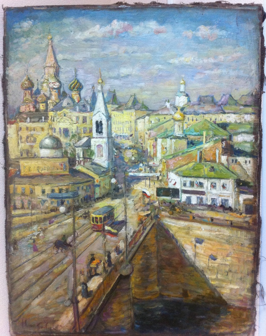 Размер 57х77. Подписана Клевер и еще какое-то слово. Может быть Москва. Лично я не понимаю происхождение этой подписи на городском пейзаже. Вроде бы Клевер и отец и сын никогда не писали ничего подобного. Что скажут многоуважаемые эксперты???