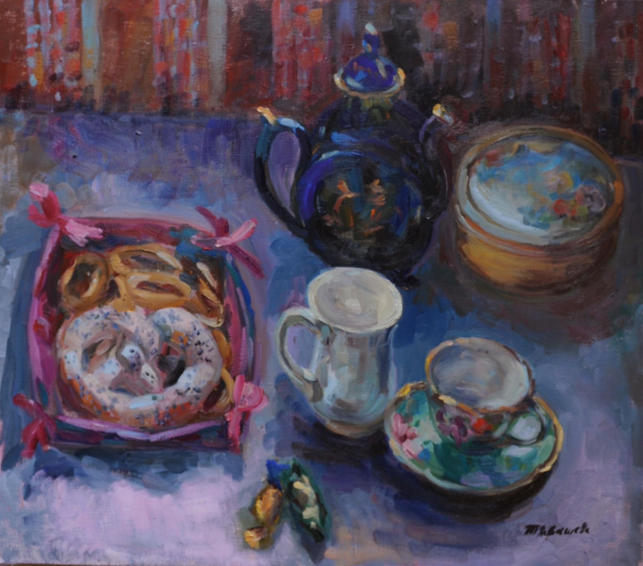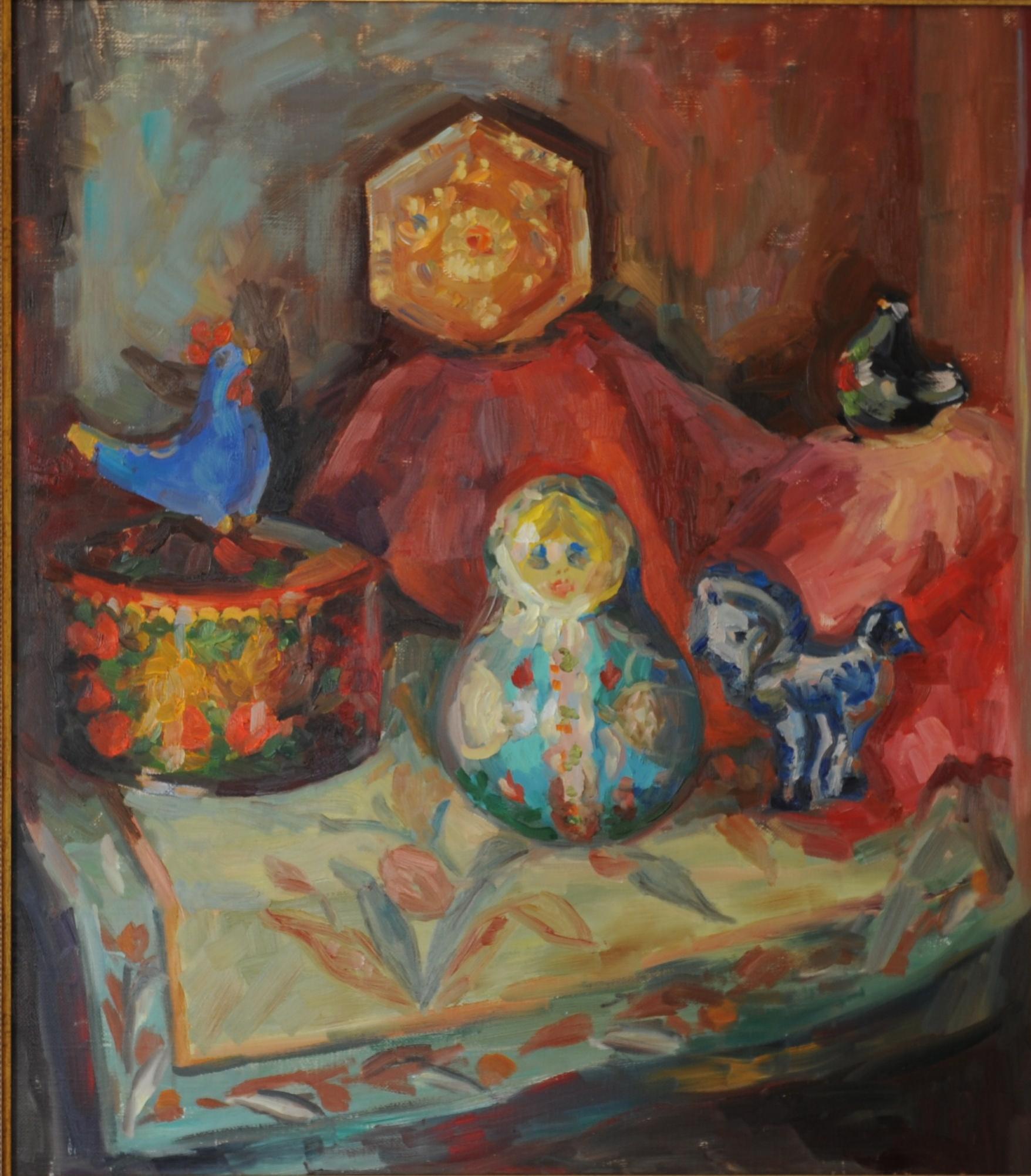 1 Самовар с чайников. Х.м. 80х70 см 2011г 2 Тыквенное поле. Х.м. 80х70 см 2011г 3 Хлебный натюрморт Х.м. 60х70 см 2011г 4 Русская полка. Х.м. 70х60 см 2011г 5 Натюрморт с трубкой. Х.м. 60х60 см 2010г 6 Осеннее изобилие. Х.м. 70х80 см 2011г |