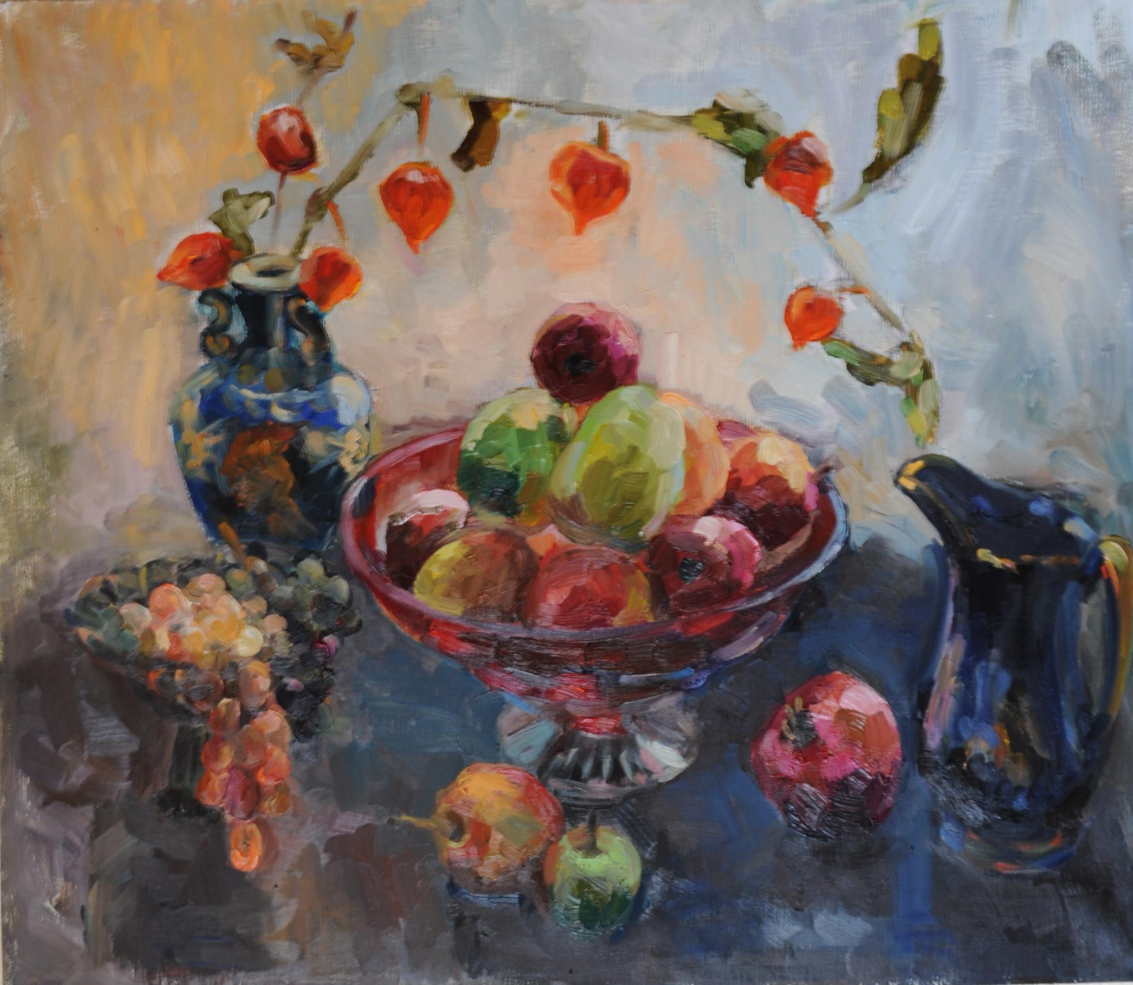 1 Самовар с чайников. Х.м. 80х70 см 2011г 2 Тыквенное поле. Х.м. 80х70 см 2011г 3 Хлебный натюрморт Х.м. 60х70 см 2011г 4 Русская полка. Х.м. 70х60 см 2011г 5 Натюрморт с трубкой. Х.м. 60х60 см 2010г 6 Осеннее изобилие. Х.м. 70х80 см 2011г |