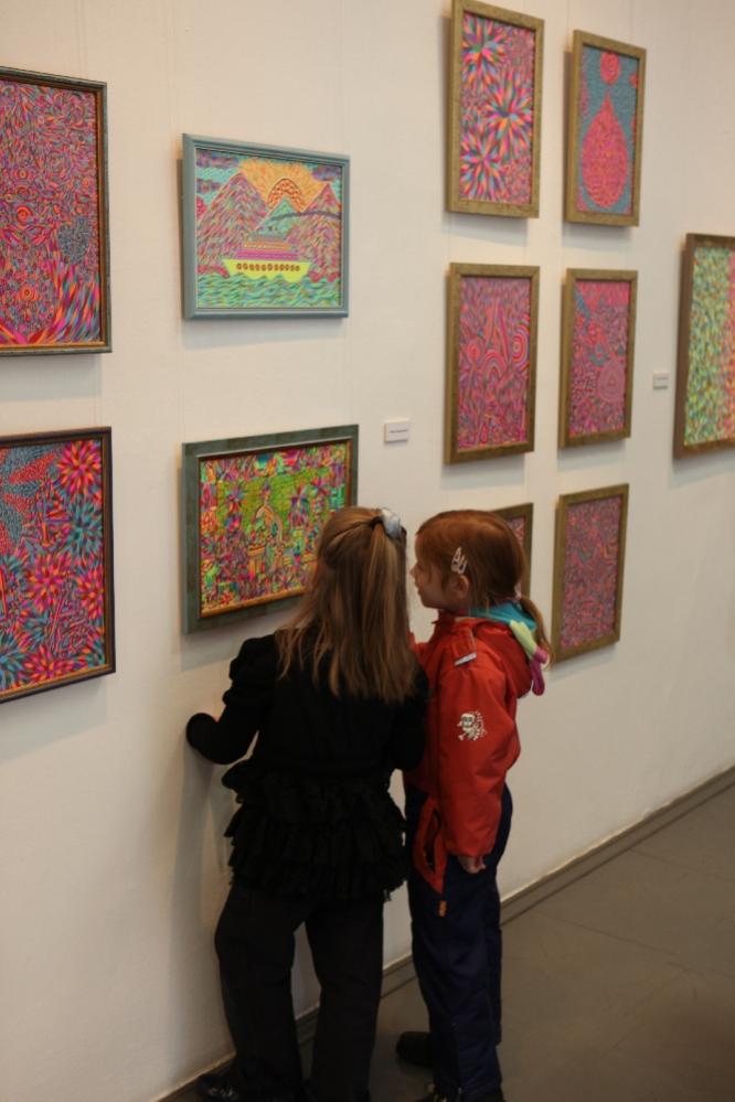 А еще на вернисаже были и дети - наша Соня (она в черном) и дочка Германа Виноградова - Василиса (в красном). Им, по-моему, тоже понравились работы. |