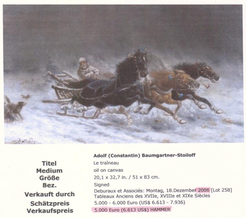 Вряд ли это Баумгартнер-Стойлов. У него подпись другая и он обычно ставил инициалы - либо "А", либо "С". На подписи этой картины окончание фамилии тоже не похоже на Баумгартнер-Стойлова. Вообщем подпись совсем не похожа...