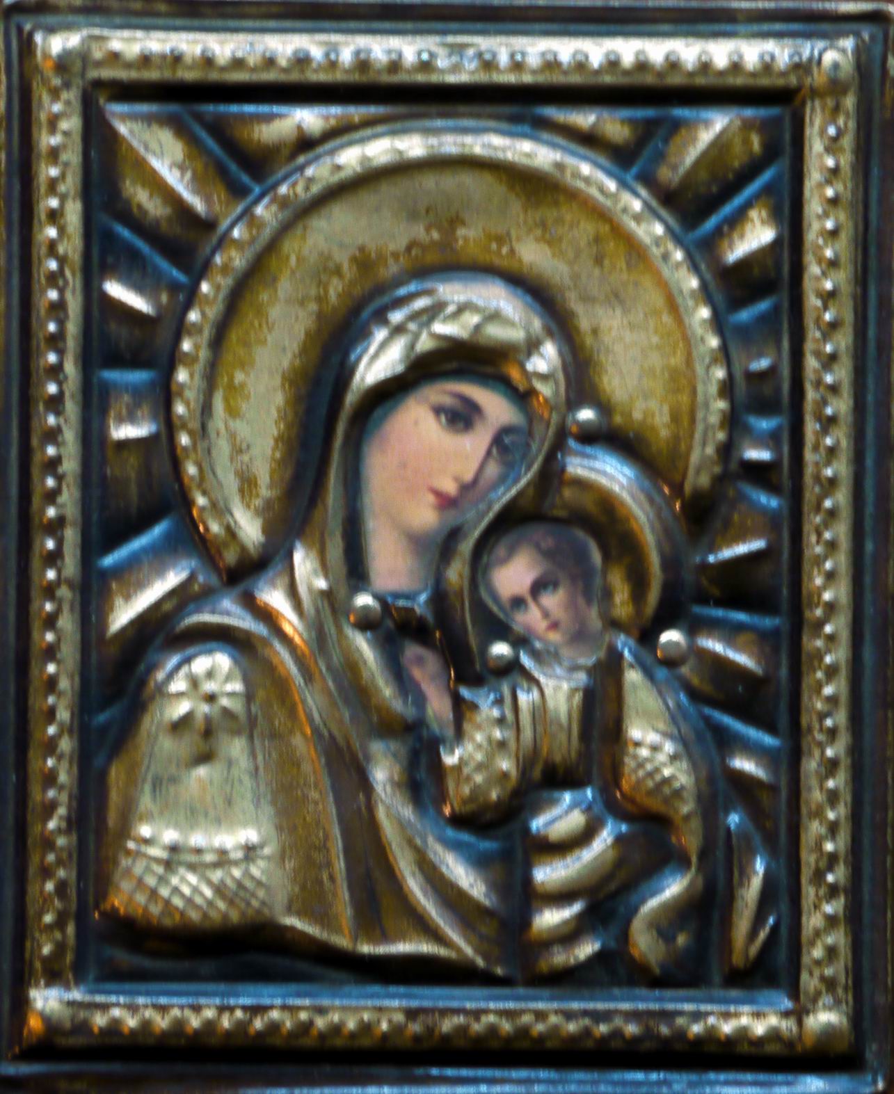 Первая -нетрадиционное изображение Марии или какой-то святой. Вторая - рыночная современная икона.