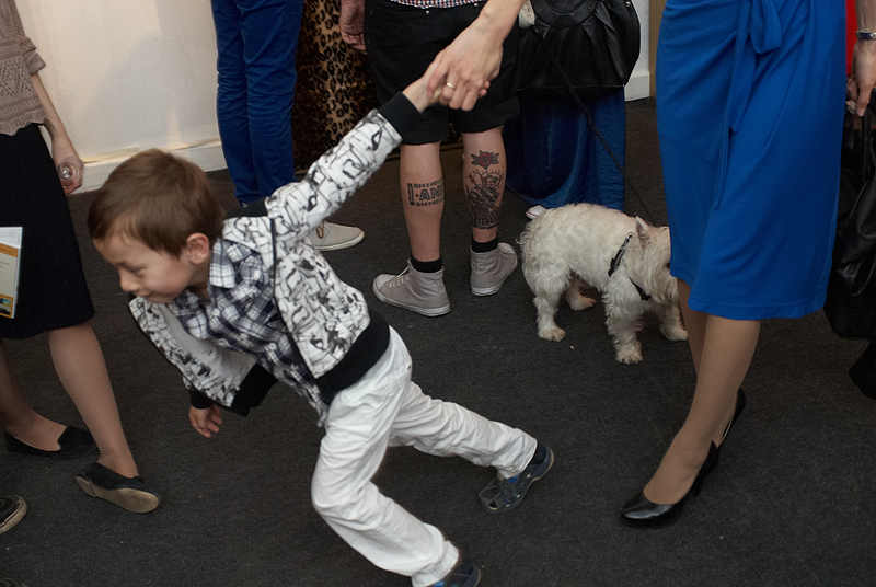 С 18 до 22 часов гости вернисажа проекта Сережи Катрана «Открой!!!» все приходили и приходили в галерею «Комната» (в здании Театра «Школа современной пьесы»), нажимали на звонок по очереди около каждой двери, слушали в наушники и смотрели на все то, что им было уготовано автором (С.Катраном) и режиссером (Софьей Васиной), а также всеми милиционерами, пожарными, сантехниками, соседками, гастарбайтерами, врачами скорой помощи и пр и пр, прекрасно сыгранных артистами Театра Вахтангова, МХАТа им. Чехова, студенты ВГИКа... Некоторые из актеров, задействованных в проекте были замечены на открытии. Особенно ярко выделялись Анастасия Михайлова, сыгравшая роль «стервы», оказавшейся (по роли, естественно) в нижнем белье, выгнанной за дверь и страстно и гневно приказывающая срочно ее открыть. И запомнившаяся абсолютно всем Собака – Вест-хайленд Кокси (на руках у персонажа «Соседка снизу», сыгранной Маргаритой Ивановой). Хозяйка собаки, кстати, а это была, как выяснилось – режиссер проекта Софья Васина – изначально и не собиралась приводить «актрису» на вернисаж. Но потом, чуть ли не в Facebook на странице проекта стали вопрошать, как же так - не будет главной героини??? – «Не пойдем тогда»!!! В общем, и Кокси все это очень явно понравилось.