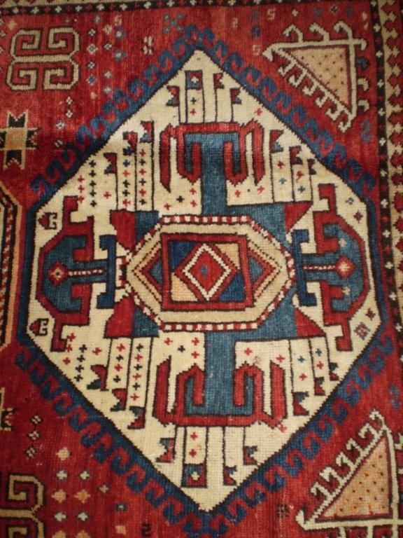 В 19 веке все кавказкие ковры ткались из тройной скрученной нити,эксперты все в первую очередь раскручивают нить,она может быть с добавками хлопка,шелка.Турки и туркмены2S. Все современные ковры ,даже из старых ниток ,будут отличатся,т.к. старые это и кавказ и персия и турция и курды и т.д.А для того ,что бы не было проблем ,берут и распускают только те ковры ,которые хотят подделать(Стар казак,свастика,челаберт и т.д.), кавказ или персию в основном. Этим занимаются турки. Ваш ковер стоит у них 400-600долларов.Сейчас по всему кавказу их произведения разосланы!!Раньше делали азербайджанцы,но у них дешего не получается!! Ну и еще задняя сторона не характерна для 19 века. Во сколько БЕСПЛАТНО рассказал!!!!А за свои знания ,я заплатил не 10 не 20 тыс.долларов ,а гораздо Более!!