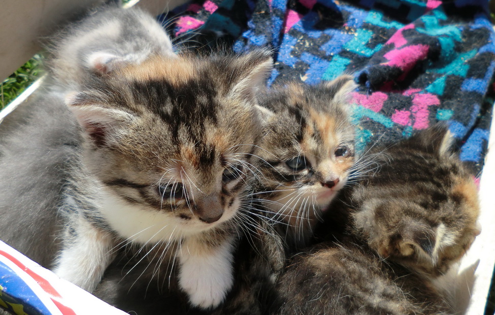 У соседа под полом в дровянике дворвая кошка родила четырёх котят.