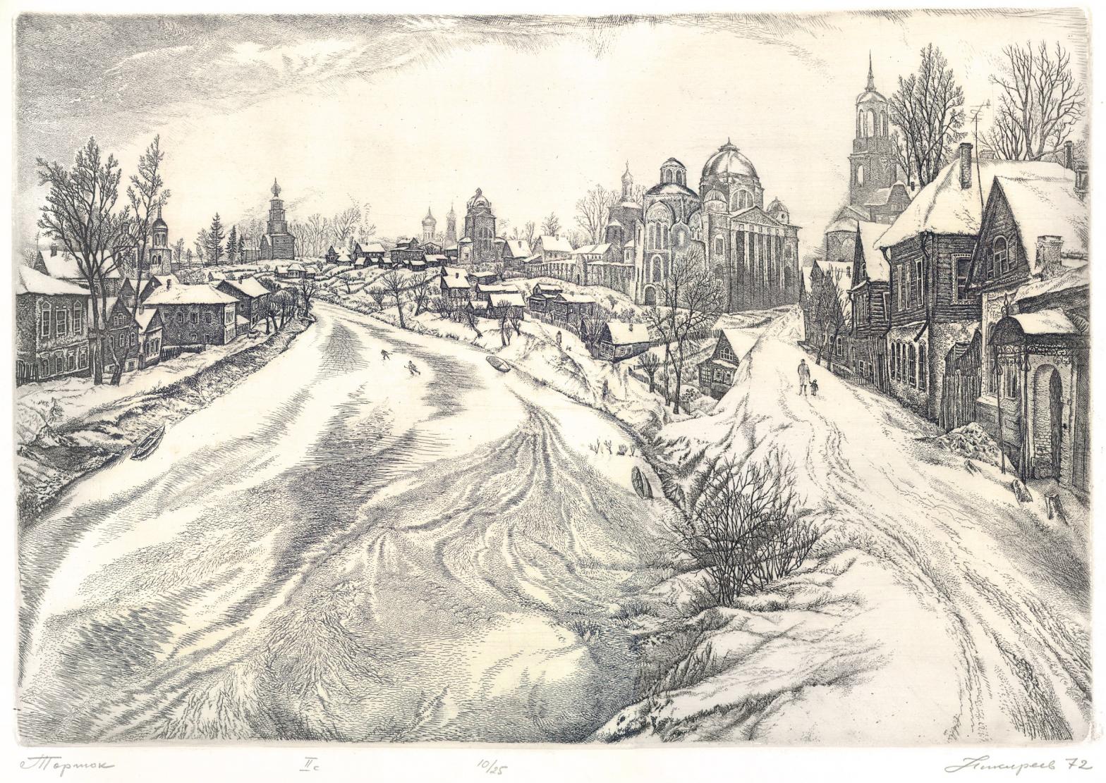 (7.11.1932 - 24.08.2007) Станислав Михайлович Никиреев родился в 1932 году в г. Мичуринске Тамбовской области, в семье рабочего. Учился в городской художественной школе, затем в Пензенском художественном училище. В 1963 году закончил Московский государственный художественный институт им. В. И. Сурикова по классу известного художника-графика Е. А. Кибрика. С. М. Никиреев - блестящий мастер офорта. Виртуозные и филигранные листы, выполненные его рукой, отличаются особым изысканным вкусом, тонкостью восприятия натуры - и поразительной художественной достоверностью. Излюбленные мотивы художника - маленькие русские города, полные своеобразного очарования старины, памятные места, связанные с дорогими русскому сердцу именами и событиями, поэтические уголки среднерусской природы. В серебряное кружево своих пейзажей автор как бы вплетает живых участников композиций - человека, лошадь, собаку, птиц, отчего листы его наполняются теплым дыханием реальной жизни. С. М. Никиреев - постоянный участник республиканских, всесоюзных и многих зарубежных выставок; его работы неоднократно отмечались различными наградами. В 1978 году С. М. Никирееву за создание высокохудожественных пейзажей Подмосковья; "Соловьиные места", "Весенний мотив", "Зимний пейзаж", "Сельский пейзаж" была присуждена Государственная премия РСФСР им. И. Е. Репина. Награждён Серебряной и Золотой медалью Академии художеств России. Народный художник России. Действительный член Академии художеств России. Работы находятся в собрании Третьяковской галереи, Русского музея, Министерства культуры Российской Федерации, Союза Художников России, более 80 музеев России и бывшего СССР. Работы происходят из семьи художника. Вербная тишина - 40000 руб. Дом Олениных в Торжке - 25000 руб. Дом Полторацких под Торжком - 25000 руб. Зимний пейзаж - 40000 руб. (ГТГ) Листья отшумели - 45000 руб. Пора капели - 35000 руб. Последние листья - 40000 руб. Старая ива - 35000 руб. Фросин двор - 50000 руб. |