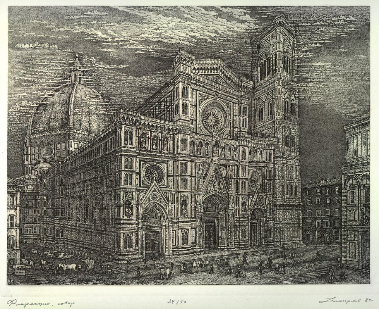 Флоренция, Набережная реки Арно, I-й вариант - один из 3-х офортов, не вошедший в альбом "По Италии". Пластина была украдена из архива Станислава Никиреева. Цена - 18000 руб.
