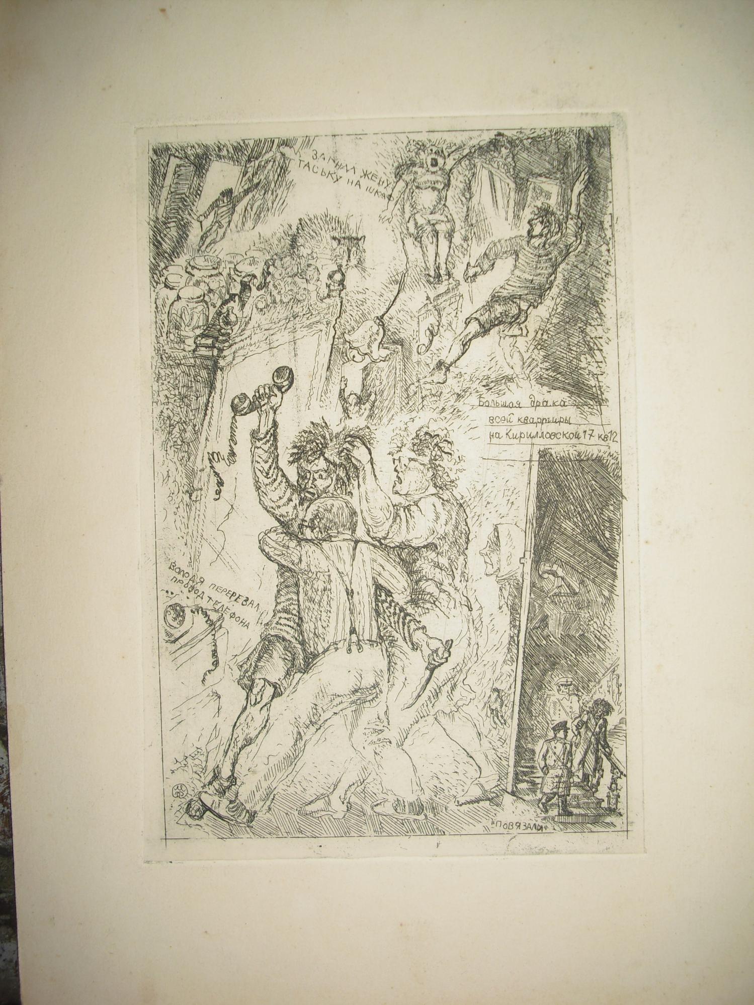 Etching. "Workshop on Rimsky-Korsakov's". Print size-15x13 cm Etching. "Mated". Print size - 18,2 x12, 2 cm |