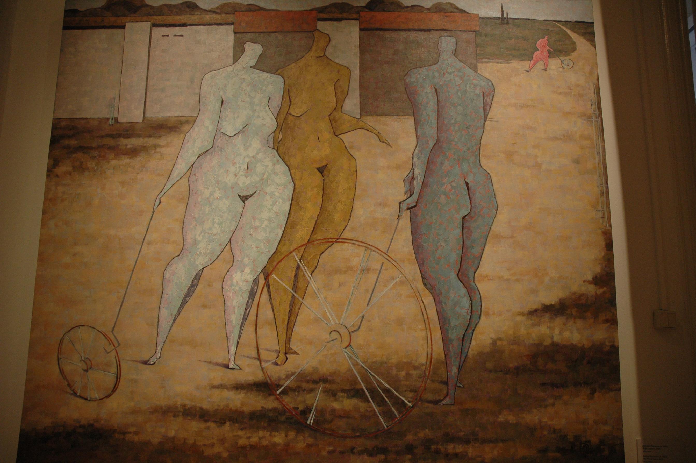 32. Михаил Дронов. Последний день Помпеи. 1997.бронза. 33. Николай Овчинников. Лабиринт № 3. 1995. 34. Екатерина Корнилова. Нимфы и старый парк. Из серии «Путешествие во Фландрию». 1995. 35. Валерий Кошляков. Голова героя. 1991. 36. Соломон Никритин. Эскиз к картине «Старое и новое». 1920-е |