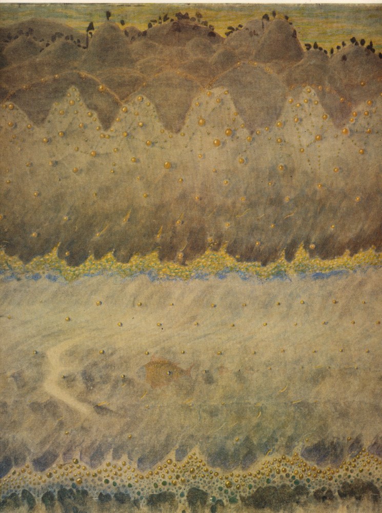 A striking example of the organic synthesis of painting and music was the work of the great Lithuanian and Russian composer and artist Mikalyusa Čiurlionis (1875-1911). In his paintings there is movement, such movement and development of musical themes. This is especially evident in cycles of paintings, sonatas, and his form approaching the major forms of music ( "Spring Sonata" "Sonata stars", "Sea Sonata" "Sonata in the sun"). And his "Fugue" is built on the principle of musical counterpoint and even visually resembles the score of fugue.