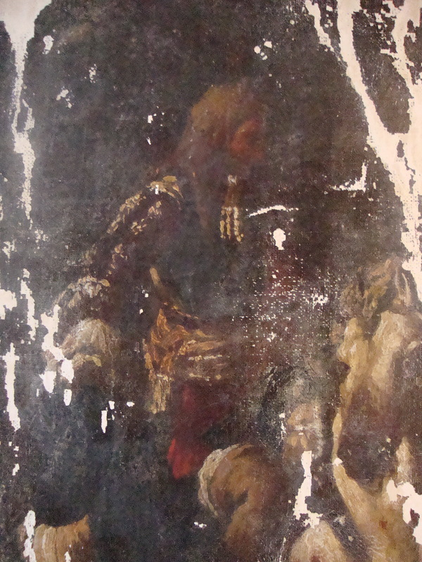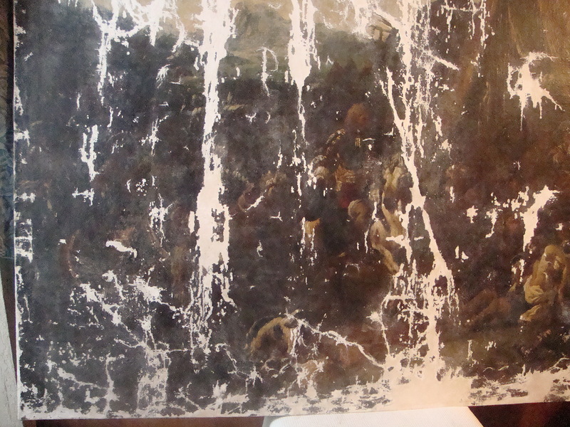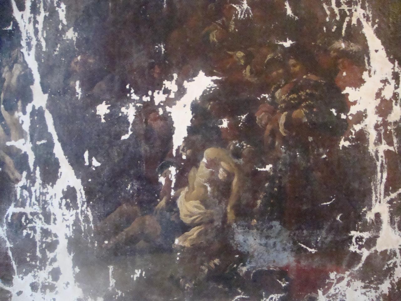 А мне здесь видится многофигурная батальная сцена, изображающая финальную стадию сражения с тяжелораненным, возможно, умирающим от ран военачальником на переднем плане. По костюму (на 2-м фото в Вашем первом сообщении) можно заключить, что действие происходит в первой половине XVII века. Но вовсе не факт, что картина написана именно тогда, а не много позже. Какие У Вас есть основания утверждать, что картина написана в XVIII веке? Вообще, подобного рода батальные картины писались с большой степенью детализации (см. влож.), что о Вашей картине сказать трудно. Фото нечеткие, с неравномерным освещением. Сделайте четкие фотографии хорошего качества, по тем, что Вы дали, можно только гадать.