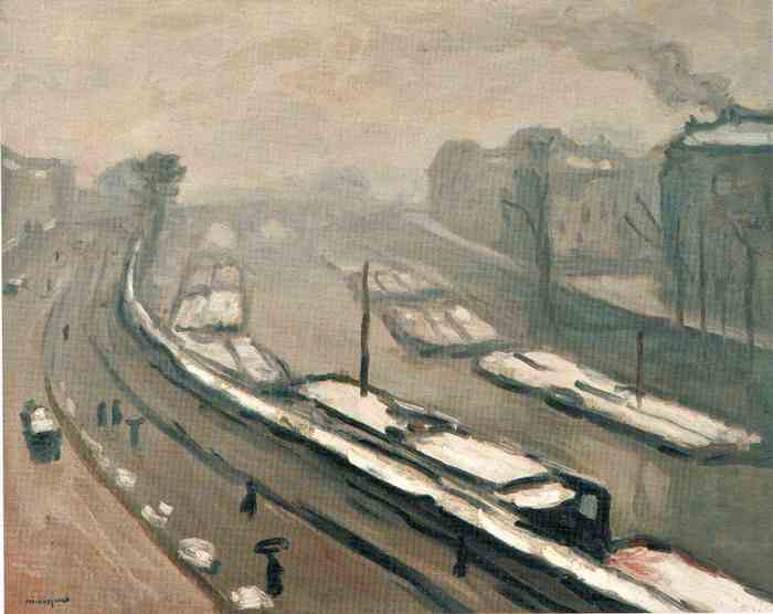 Albert Marquet as nobody knew how to write Parisian stone embankments and bridges, slate roofs of Paris ... His element-stone and water, gray and gray Seine Cité island with the Palais de Justice, Notre Dame and the Prefecture of Police. The main thing with him - that sky, clear sky gray Parisian days, namely in those days Paris truly mesmerizing. Art Marche unknown paroxysms. He, like Schubert's lone traveler, quietly sings his song of the Paris quays, snow or sun-scorched lead, and the song is known to him alone. |