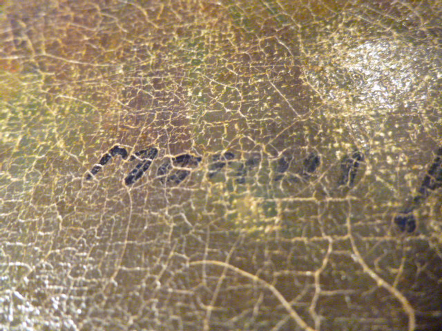 Такой вот "Немецкий Импрессионизм"... Уже не раз убеждался, что нет неблагодарней дела, чем фоткать черную подпись на темно-зеленом! Если "...Jacobi 1920" читается вполне легко, то с именем уже имеют место некоторые трудности. Подозреваю, что некоторые буквы слегка осыпались и здесь потребен какой-нибудь, недоступный моей "мыльнице" инфракрасный ультрафиолет ![]() Больше всего похоже на "Henry", но Henry как-то не по-немецки звучит... Впрочем, минимальная информация доступна на приклеенной сзади к подрамнику специально для слабовидящих - бирочке! В базе данных настолько большое количество людей с этой фамилией, что я, изрядно растерявшись, никого более-менее подходящего найти не сумел... Хотя вещь настолько характерная, что в безвестность художника не верится ни под каким соусом! Так что, может быть, кто-то узнает автора и по тому, что есть. Картина в профессиональных руках (не считая моих, разумеется), до сих пор не была и любые "открытия" вполне возможны! Наверное, отправив фото на какой-нибудь немецкий аукцион, можно было бы на какую-то информацию рассчитывать, но, получив несколько примечательных жизненных уроков от представителей тамошней русскоязычной диаспоры, я еще лет 10 назад почел за благо с этой страной "завязать" и никаких связей там у меня не осталось... Хотя, почему бы и в направлении Австрии не подумать? |