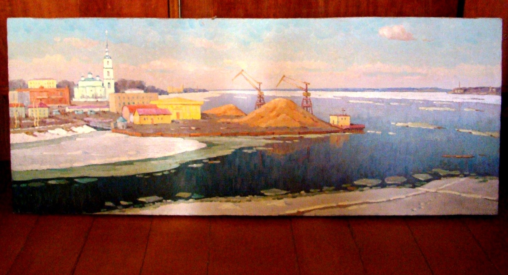 Полное не соответствие по размерам если смотреть по высоте этажей и величине окон и дверей .Причём на переднем плане - для лилипутов а на заднем - для любителей больших люстр.Недавно в одном из разделов форума обсуждалась картина вроде как Верещагина где у девочки руки ,если она их опустит ,достанут до земли.Вроде ничего особенного,может кому и нравиться ....Вот здесь что то подобное только с домиками .А реалистический АРХИТЕКТУРНЫЙ пейзаж,коим эта картина является ,обязывает...Всё остальное лирика. Лично я не приобретаю безграмотные архитектурные пейзажи - теряется смысл.