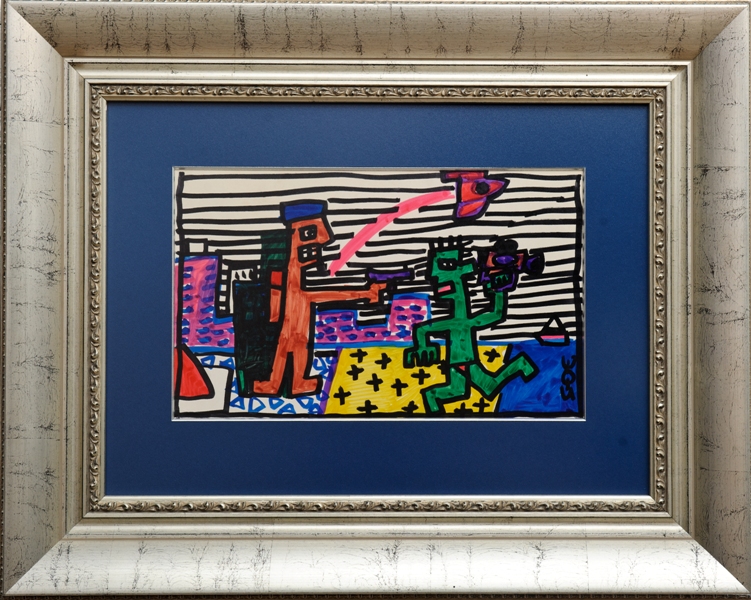 Виктор Цой, Битва, 25 х 40 см., бумага/цветные фломастеры, 1980-е гг.