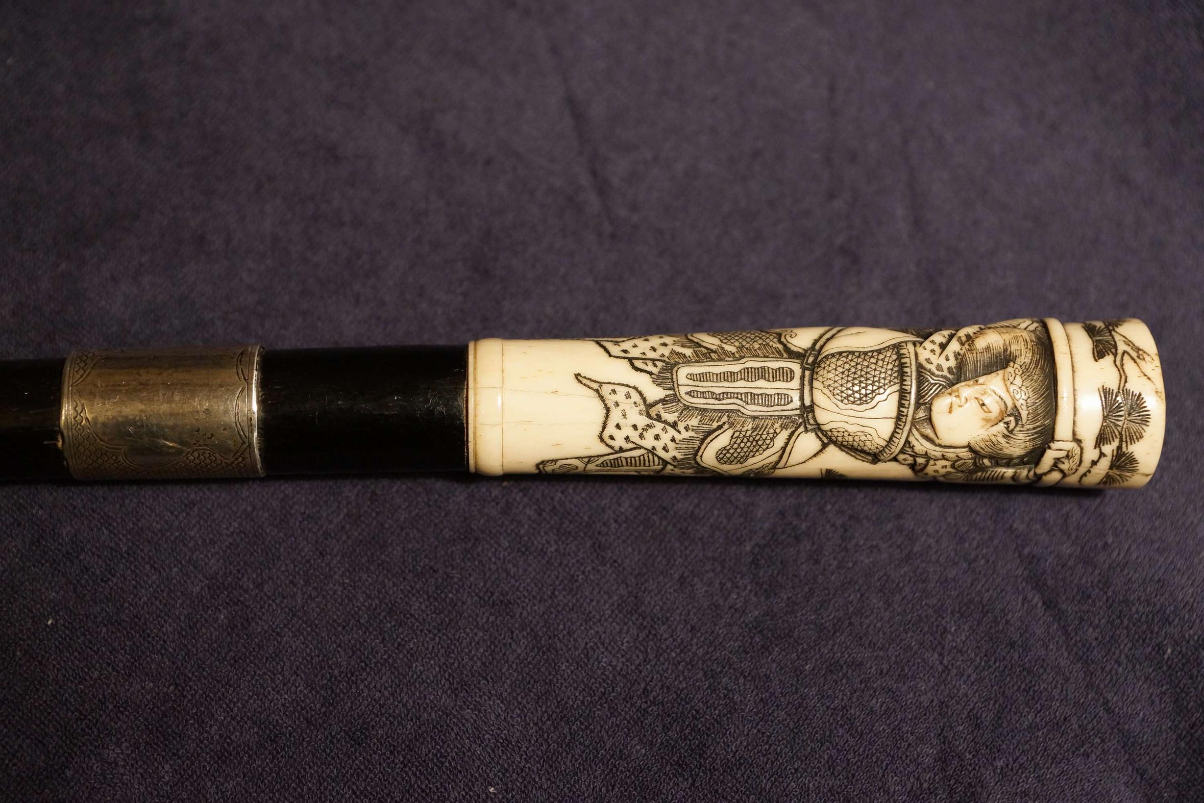 Старинная трость японского воина с рукоятью из слоновой кости "Самурай". Япония, XVIII век.