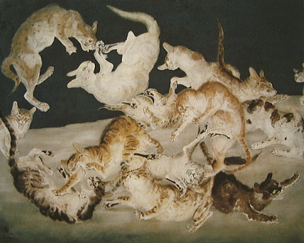 LCR, пожалуйста - на многих картинах изображены кошки. Это связано с культом кошки в древней философии или это просто любимые животные Фужита?