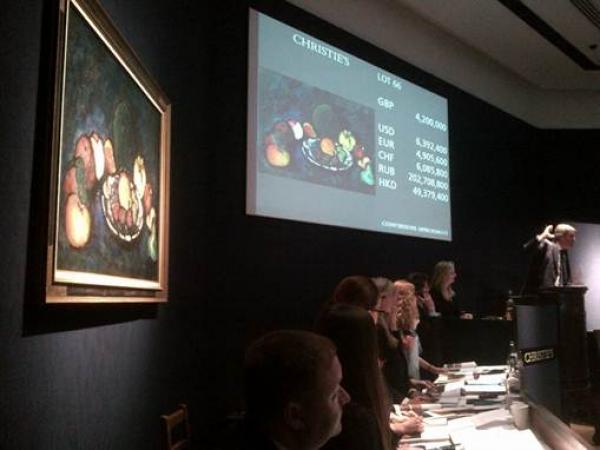 The painting "Still Life with Fruit" painted by Russian artist Ilya Mashkov sold at auction at Christie's for U.S. $ 7,253,000 was thus set a record for the cost of the artist at auction. This is stated in the message auction house. In the fight for the lot, which lasted five minutes, was attended by customers over the phone to one of them and got a masterpiece. Name of the new owner of the painting is not called. "Still Life with Fruit," written in 1910., Was one of 20 works I.Mashkov included in the first exhibition of "Jack of Diamonds", which was held in December 1910. and January 1911. The list of exhibits, an initiative of Natalia Goncharova, Petr Konchalovsky, Mikhail Larionov and Aristarchus Lentulova, along with the works of Russian artists also included paintings by French Fauves, representatives of German expressionism and Cezannism. The painting "Still Life with Fruit" participated in the spring exhibition at Christie's in Moscow in April of this year, before this masterpiece is not exposed to the public 100 years. The last picture show in the exhibition, organized by the Society of Contemporary Art in the City Museum of Amsterdam, in 1913. together with the works of Derain, Mondrian and Konchalovsky. By around 1920. "Still Life with Fruit" was in the collection of William Beffi, which, according to some sources, purchased it in 1913. at the insistence of one of two people: Le Fauconnier, who himself was a member of "The Jack of Diamonds" 1910., or Conrad Kikerta - Dutch painter and art critic, worked as a secretary and treasurer of the Society of Contemporary Art. Add that another still life I.Mashkov "Flowers" was previously sold at Sotheby's for $ 3.5 million Read full article: http://top.rbc.ru/society/03/06/2013/860391.shtml |