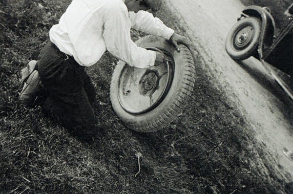 Весной 1929 года Лиля Брик на автомобиле Маяковского “Renault NN” решила устроить автопробег “Москва-Ленинград”. Александр Родченко был пассажиром-фотокорреспондентом. Пробег так и не был завершен, отъехали верст 20 от Москвы и проколов колесо автомобиля решили вернуться. |