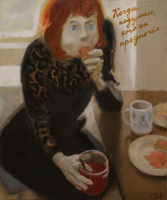 Джерих, Анжела (род. 1955 г.). Украинская художница, в сети очень известная. Ее пример наглядно подтверждает тезис I-V о том, что «ирония и отсылка к недавнему прошлому» способны стать своеобразной творческой нишей для художников-жанристов. А. Джерих в своих картинах любит обращаться к периоду «развитого социализма». Интересно, как и каким будут изображать наше сегодняшнее время лет через 25-30?.. Мне больше всего понравились «Соперницы» и «Окно».