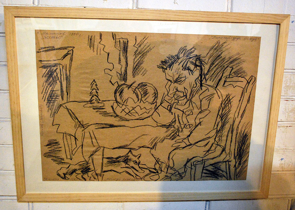 The material consists of three parts. First, several large drawings, sketches Cyril Mamonova, who attended boarding school in the mental Yakovlev. The second part - almost an entire wall collage of portraits of Alexander Sabrina. He also photographed Yakovleva at the boarding school and skollazhiroval these pictures with recognizable gouaches and paintings by the artist. All seemed to present the birthday child. And, finally, the third part - drawings, and more sketches and drawings on the scratch pad pieces of paper from Vladimir Yakovlev. Images mostly non-profit, not adjusted, rough. Yakovlev painted for himself, as conditions permit (just do not draw could not). Man runs the risk of ill-prepared to see in them nothing but scribbles. So begin acquaintance with the work of the artist is from this show it would be rash. It is better to await the moment when you can comfortably watch the spectacular Yakovlevskij gouaches and oils, of the 1970's, 1980. And only then delve into the nuances. Exhibition "at the easel longer addressed longtime lovers, collectors, friends of the artist, who remember Yakovlev and such, and others. Not by chance on opening day apple was nowhere to fall (hence the muffled angles images): people aged 50-60 years had come for a holiday, birthday of the Russian genius. And now - that managed to photograph. |