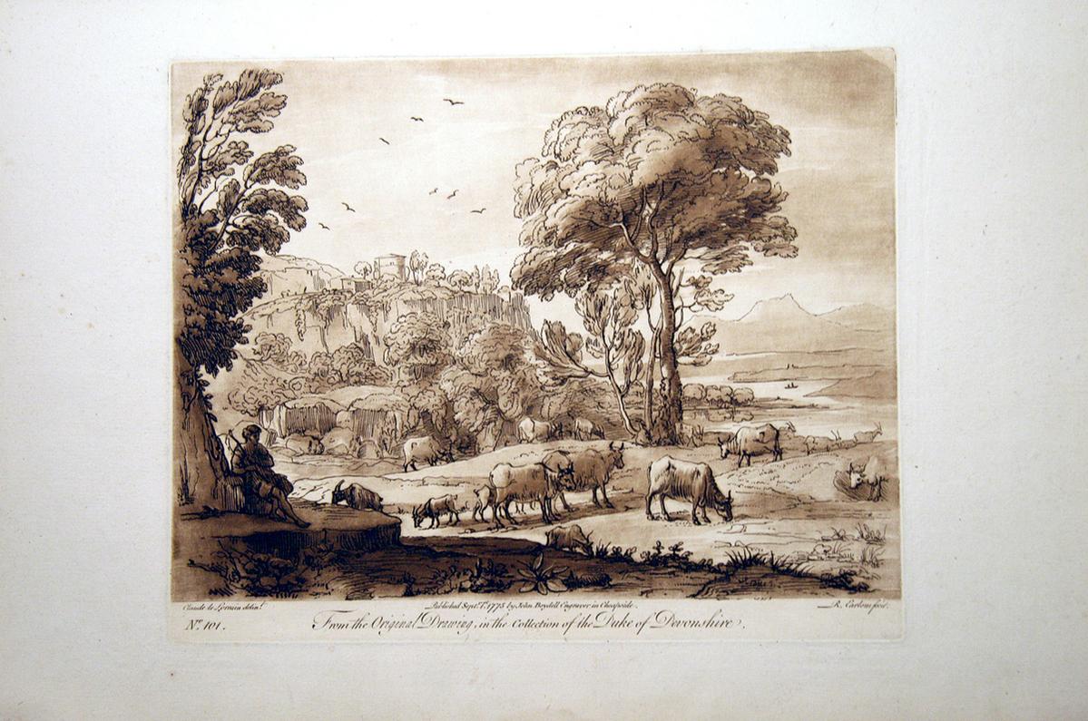 Liber veritatis, or A Collection of two hundred prints, after the original designs of Claude Le Lorrain in the collection of His Grace the Duke of Devonshire. Executed by Richard Earlom, in the manner and taste of the drawings. London: Jonh Boydell, 1777. Vol. II. 103 ненум. листа. 41 х 28 см.