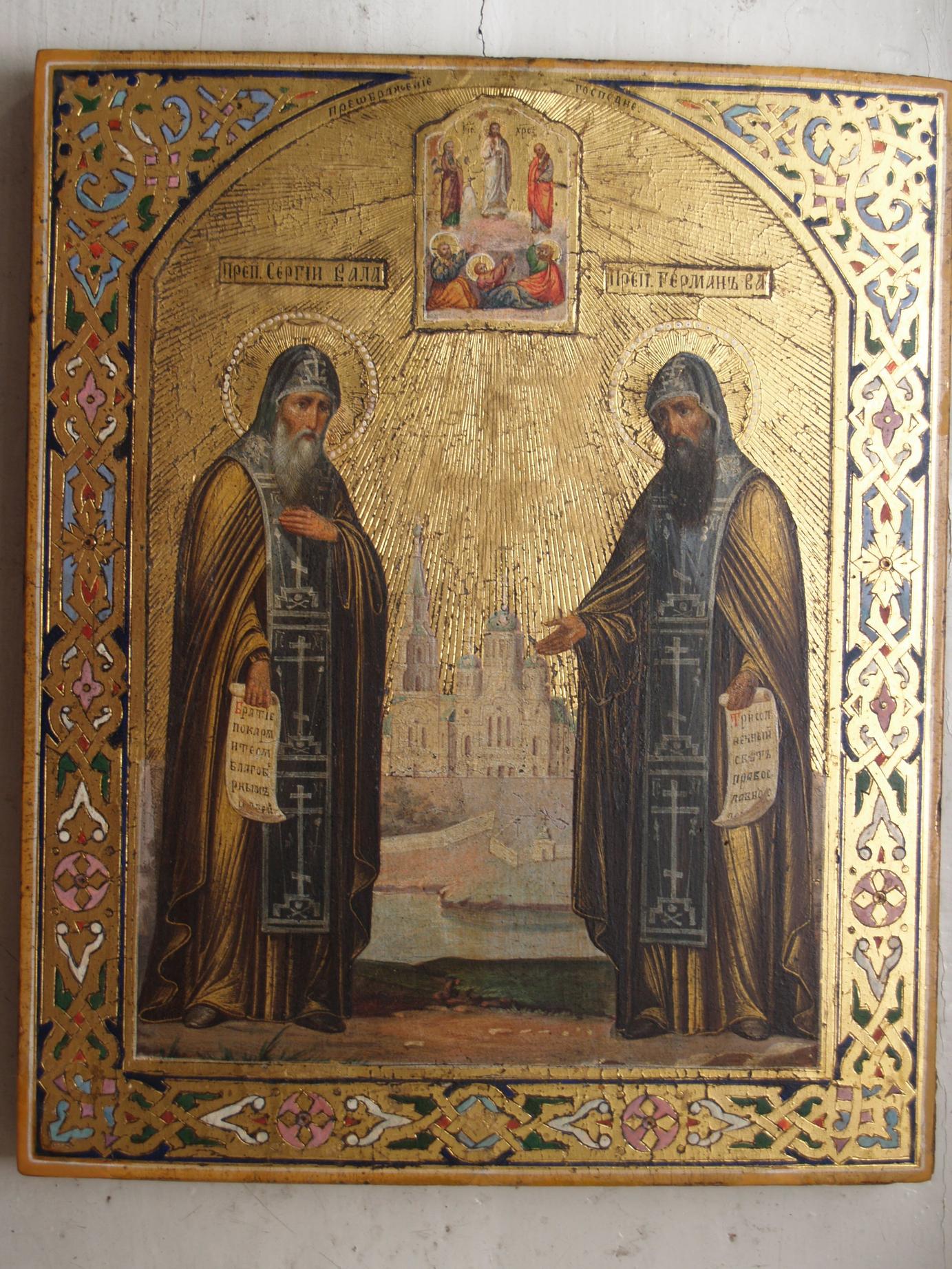 Icon of prep.Sergiya and Herman of Valaam . Russian Empire , the nineteenth century .