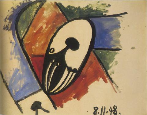 Pablo, ранний (20-летний и старше) Пикассо работал в реалистичной манере. Последовательность такая- 1901 - фовизм, влияние Тулуз-Лотрека, далее голубой период, далее розовый, потом африканский, потом кубизм, потом аналитический кубизм, а вот дальше можно начинать смотреть похожее на эту работу вплоть до 20-х годов, когда он стал писать классицизм, потом с Дорой Маар вернулся к деструкции-синтезу и т д. И у него много работ , где он на заднике натюрморта пишет волнообразные пятна цвета.