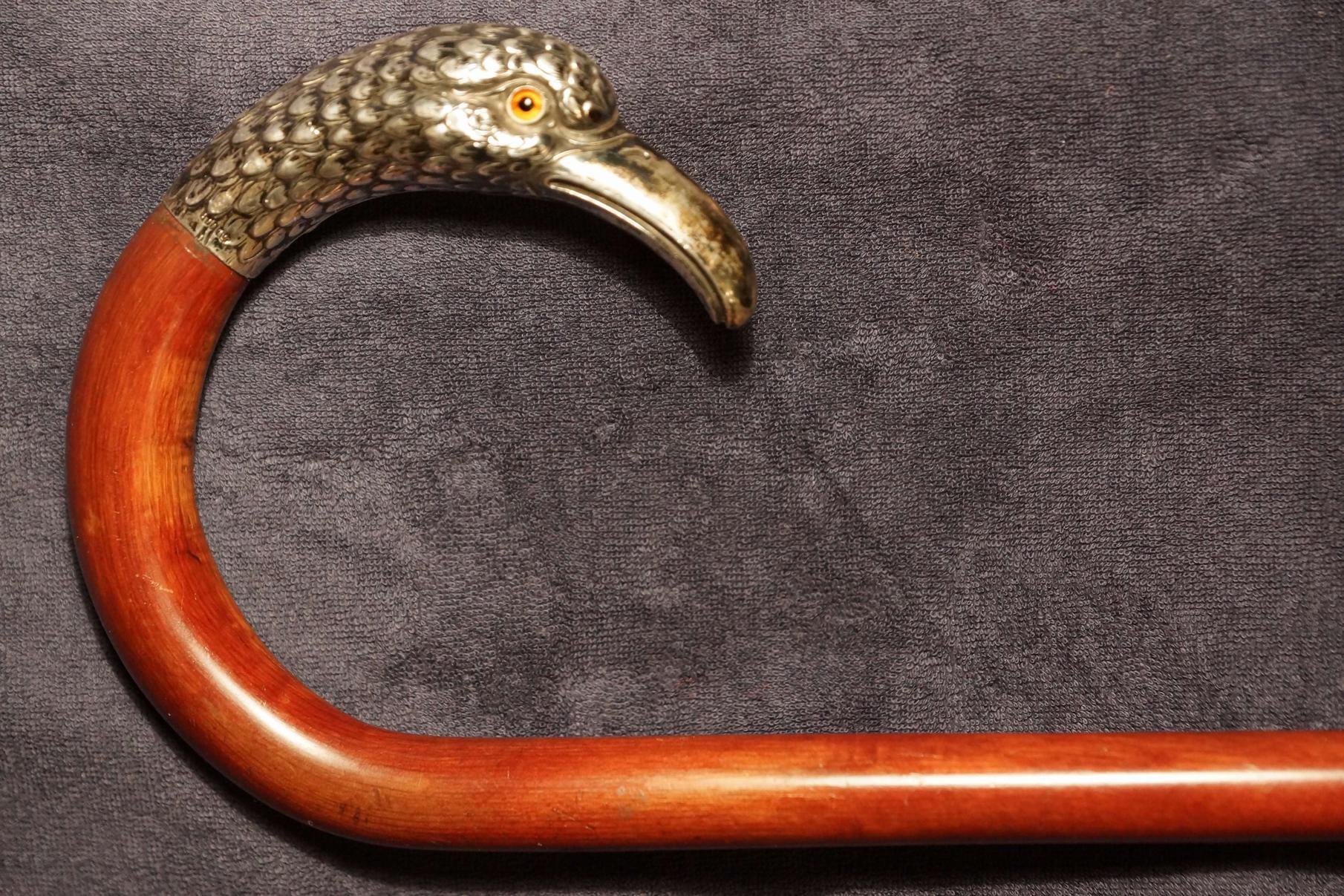 Walking cane in the Art-Deco style with an elegant silver handle in the form of an eagle's head.