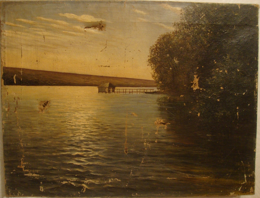Реставрация бессмысленна. Насчет автора - не разглядел, вроде по-русски написано. Русский похоже художник, вероятно эстетствующий помещик - баловалисЪ.