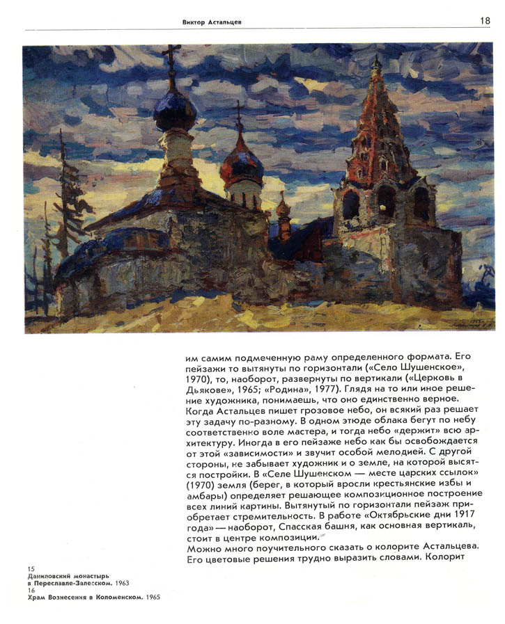 Mikhail Alpatovs as art historian, professor at the Moscow Art Institute. VISurikova actively interested in the work of his student VV Astaltseva more time with the institute and an article in the album VV Astaltseva, released in 1988 by publishing house "Soviet Artist", he wrote it. This is practically the only work of the great art critic (extremely mutilated by the censor), dedicated to Russian artist of the Soviet period. MV Alpatovs conceived this work as a great album with more than a hundred illustrations (as evidenced by a letter that is stored in the archives of Viktor's daughter), but the theme of Russian history and Russian landscape at the time show the publisher is not relevant. I decided to scan this album and share with images forumcanam stunning reproductions of works of Viktor Vladimirovich Astaltseva. I hope you enjoy and would be interested to hear your views on the work of this wonderful and unjustly forgotten, and very soon departed master! More images of his works I found here: http://astalcev.ru/ |