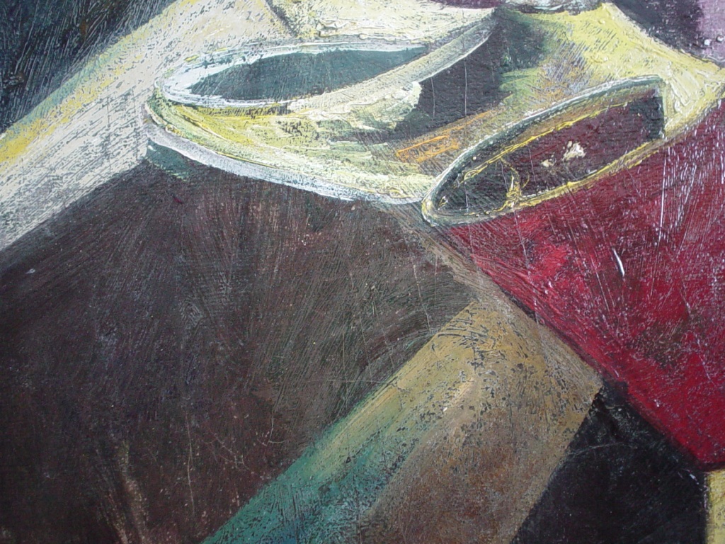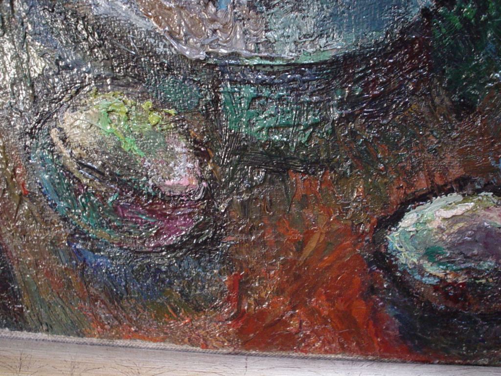 Let me to another subject. 15 years ago, my husband was in Kiev, bought some alcoholic-Podol in a terrible state of 15 paintings. Almost cried when he brought a broken-podramenniki, some were for many years on the balcony, some lay bricks and tiles. In general, a whole year of putting in order. Hung, and how his hands did not reach them, they have not been signed. The women that probably is not. but the husband said that after someone from the circle of artists out on it. In general, I do not know whether it is possible attributes and assessment, and whether these Activities. My personal opinion, drew a professional firm hand. But in my opinion influences sentimental attitude to the picture. 1. 90x70 oil on canvas, texture. Year 50th or maybe sooner Is there any sign in the lower right corner, but I can not calculate, some lines Specialist reception at Christie's told me (she had not seen even a photo) that the unperturbed sell a thing and appreciate, too. And in general, someone focused on what the prices are the vanguard of an unsigned? Where any of the auctions have been something like that? |