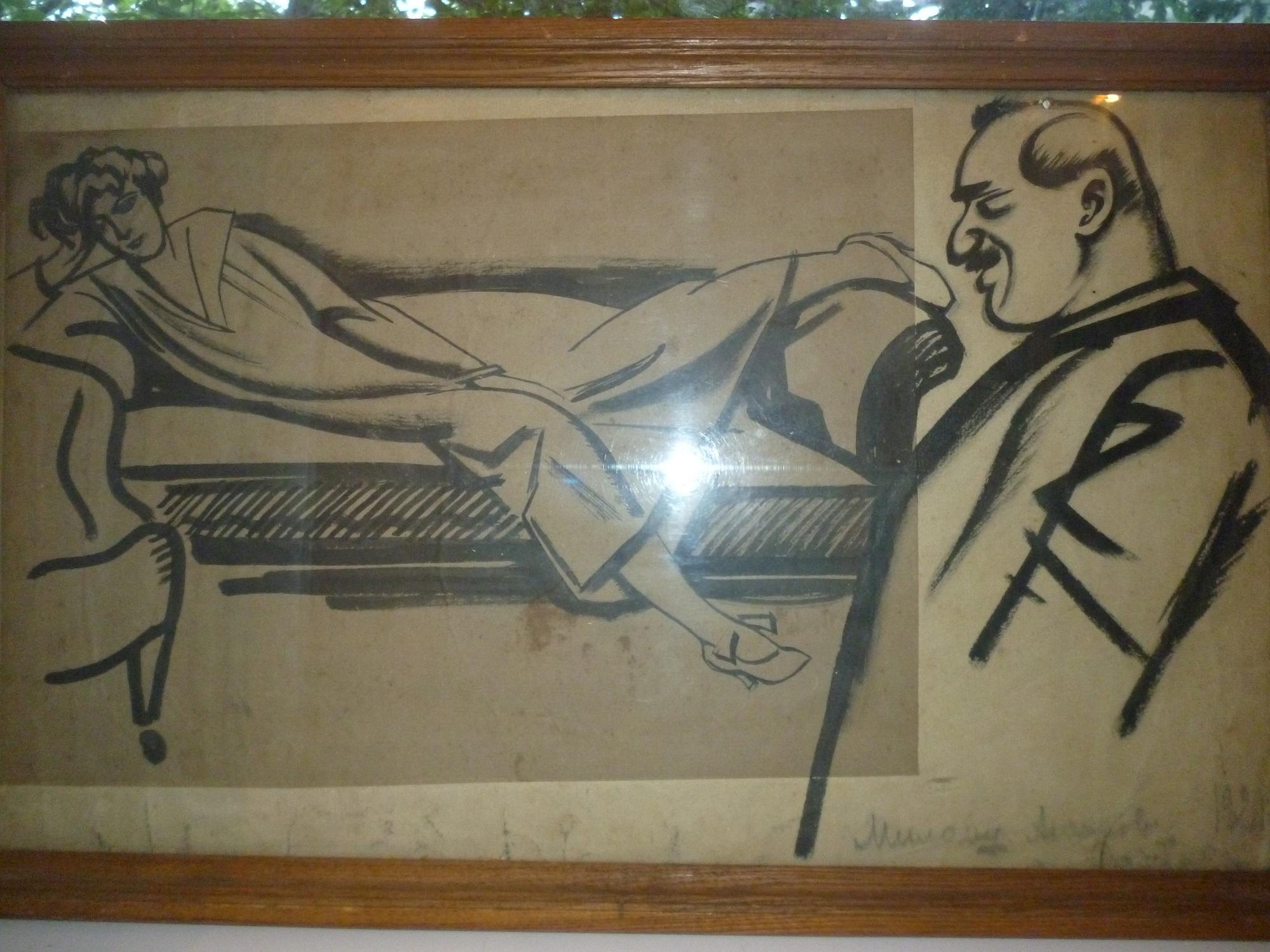 Автор неизвестен(подпись была написана карандашом,потом как-будто кто-то пальцем стер), дарственная подпись "Милому Машкову",техника-бумага, тушь, 1921 г., размер-48.2*30.6 см. Очень приятная взгляду работа.