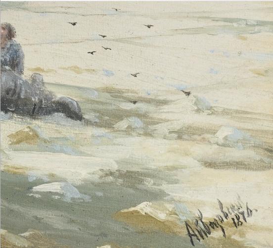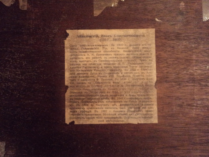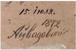 Как то все у вас завуалированно.....Я прочитал много ваших рецензий на форуме.Там вы были более многословны......То берега Феодосии не узнавали...То волны у вас не так плескались.....То мазок не такой глубокий.... А тут всего лишь красный цвет подписи не удовлетворяет.....Да еще и сомнения по 1874 году.....Так уверенно отвечаете, что у меня создается впечатление, что в 74 вы весь год вместе с автором провели, и поэтому утверждаете, что он ее не писал...и вообще имел отвращение к красной краске, и ей ни в коем случае не подписывался....