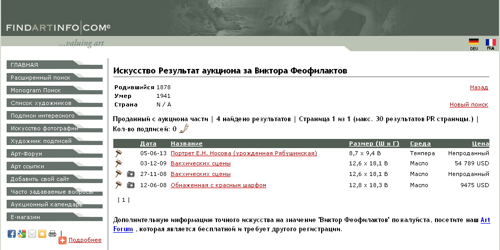 | Портрет | Статус | Цены, оценка, атрибуция | 1 | 06.04.2010 23:50 |