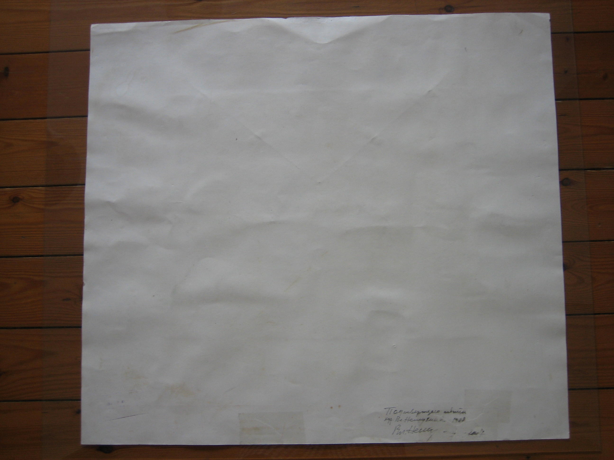 Mixed media on paper , collage. Unframed . Dimensions: 69.5 x 77.5 cm Year: 1988 . Signature and date: " Ow. Nemukhin /1988 "( bottom center ) . On the back side : - Of witnessing the inscription: "I confirm thin work . Ow. Nemukhin - 88 " , the artist's signature and the date 2007 ( at my request Vladimir assured authenticity of the picture ) - Stamp: "The Ministry of Culture of the USSR . Allowed to be exported from the USSR " (stamp was placed in Leningrad in 1989 , when I designed the pattern of export of the USSR ) Condition: small tears bottom edge ( visible in the photo ) . Location paintings: Brussels Price: 9000 €. There is a document entitled " Inspection Painting" from 25.09.1989 , issued by a customs officer when I export pictures from the USSR. Literature ( prints, similar in composition ): - Album «Wladimir Nemuchin» ( edition GALERIE BARGERA, Cologne ), page 80 - " New album charts " ( publishing house " Soviet Artist" , 1991 , ISBN 5-269-00080-6), page 68 . This album is attached to the picture. |