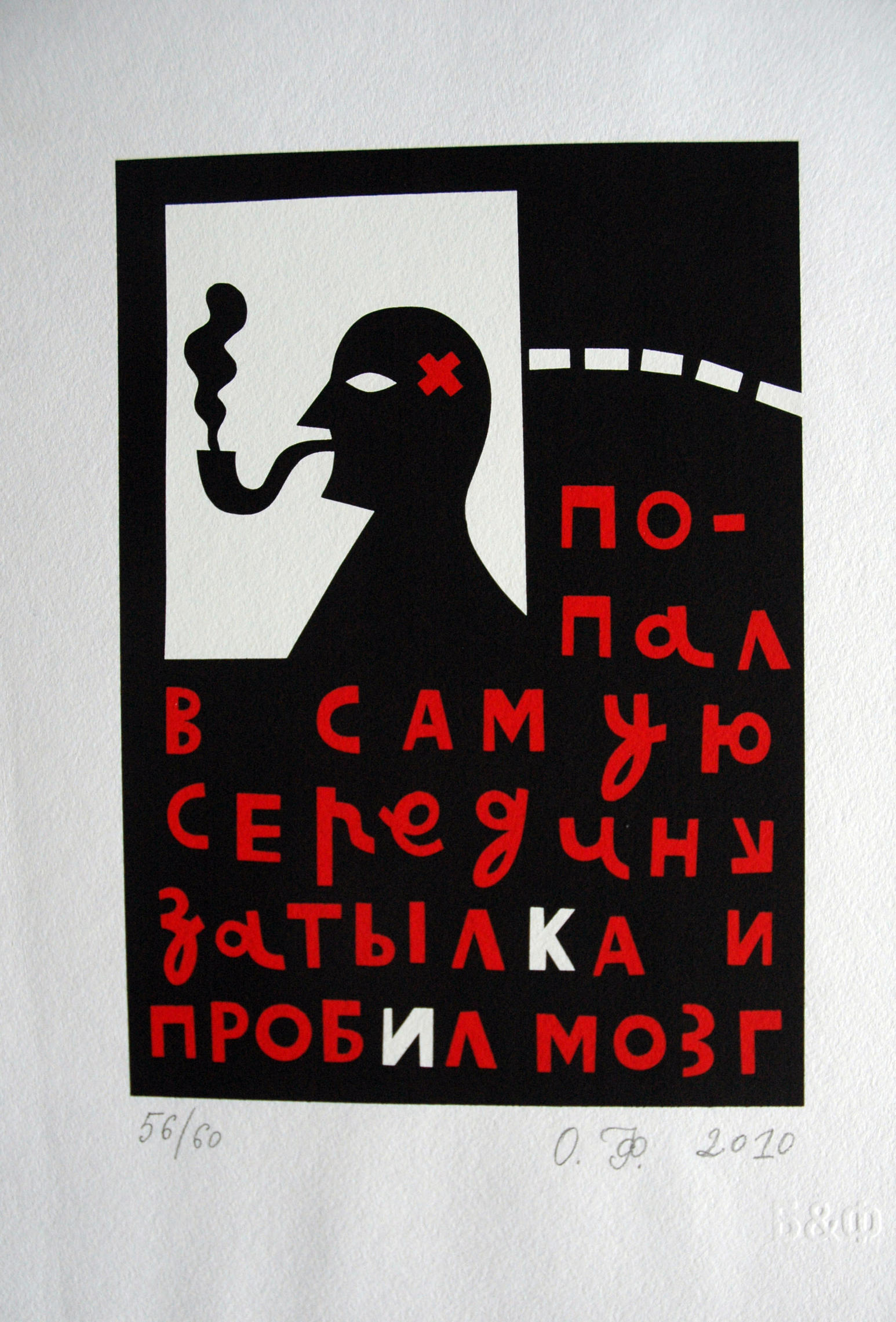 series of 10 prints «Sherlock Holmes» 2010 serigraphy Image size 28 x 20 cm paper size 42 x 29,8 cm publisher studio hand printing BF Circulation 60 + 20 A /P tsena14000 "I probably never would have occurred to me to illustrate the stories of Sherlock Holmes, if not the artist Alexander Shaburov, a well-known figure in the world of domestic" Contemporary Art ". Suddenly, it became clear that Shaburov - a prominent specialist in the field of "holmsovedeniya." He was going to publish something like a detailed encyclopedia devoted to the well-known detective, and invited a number of artists to participate in this project. I was asked to do ten pictures to all the stories about Holmes on my choice. I must say that illustrate the stories of Sherlock Holmes - a pleasure. Everyone who has a child holding a yellow book of Conan Doyle's "Libraries for adventure," remembers detailed black-and-white pictures taken under the undoubted influence of the classic illustrations of Eugene Paju, and fitted with a spectacular signatures such as "Over Hugo stood vile monster ...". A close reading of texts Conan Doyle was found out that almost every page of stories about Sherlock Holmes can nakovyryat a couple of juicy quotes: "He was a man of strong will," "The unfortunate Colonel was dead," "Then I grabbed a poker from the fireplace. The fight was fair, "" The light was hitting the open safe ... "and so on. It looks like a glib newspaper headlines. So the stories there was no shortage. I have always loved to cut out of colored paper images with different labels. So in the case of Holmes, this technique came up as well as possible. Now, thanks to the printing studio "B & F", I had the opportunity to do the illustrations for the stories of Sherlock Holmes and even in silkscreen. " O. Florenskaya 1. "J.. Mortimer CHKHO FROM FRIENDS IN CHKL "(" Hound of the Baskervilles ") 2. "OVER THE HUGO Stoyan VILE BEAST" ("Hound of the Baskervilles") 3. "It's a spaniel Mortimer" ("Hound of the Baskervilles") 4. "Harpoon PASSED THROUGH" ("Black Peter") 5. "ILSI, prepare to die" ("Dancing Men") 6. "I LIVED PANTHER DR and baboon" ("The Speckled Band") 7. "He was a man of strong will" ("A Scandal in Bohemia) 8. "I know the methods of struggle BARITSU" ("The Empty House") 9. "Have got into the middle back of the head" ("The Empty House") 10. "It was a small negrityanochkoj" ("Yellow Face") |