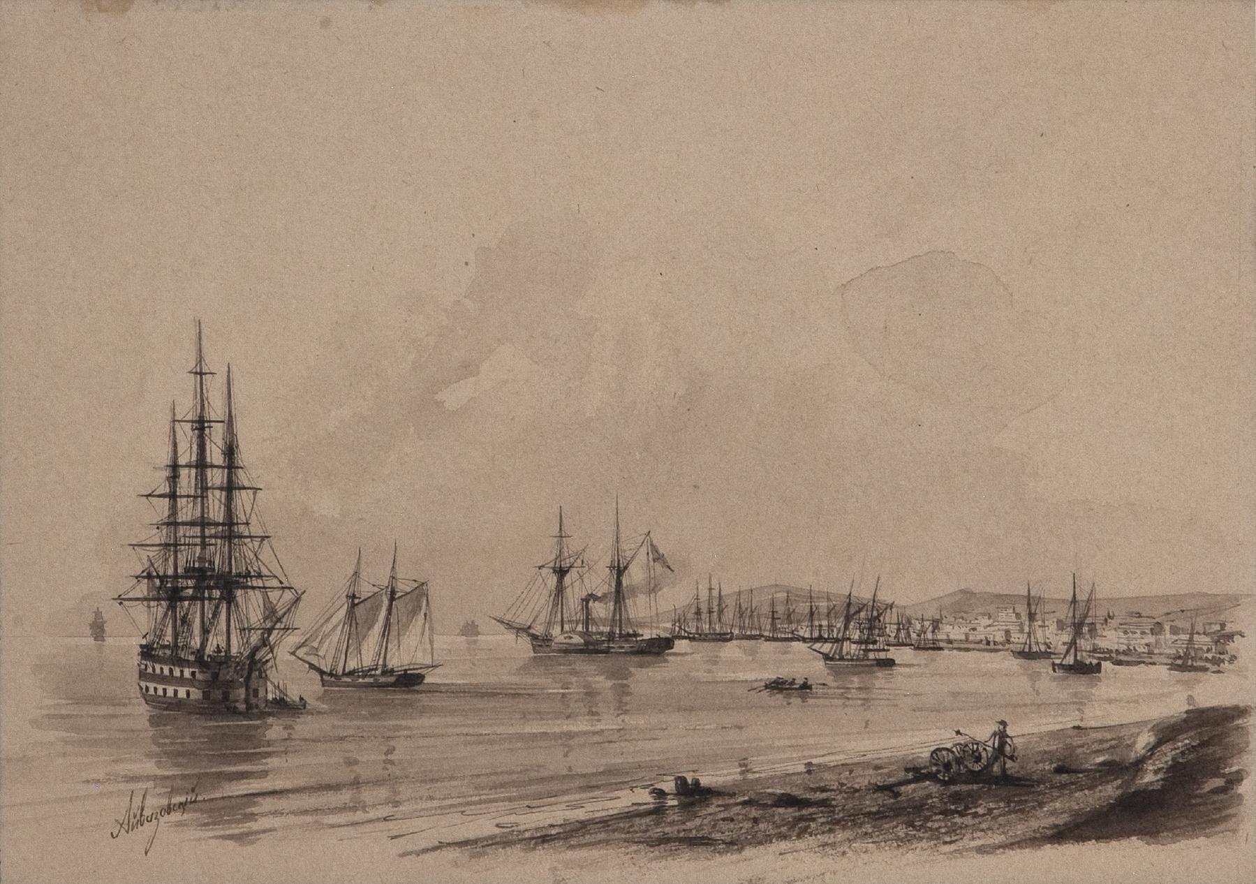 К Айвазовскому этот рисунок никакого отношения не имеет и подпись фальшивая. Подобных картин у Айвазовского нет. Существует большое количество подобных рисунков-подделок в технике сепии с применением белил, как правило не датированных. Вместо автографа - неудачная попытка подделать подпись Айвазовского.