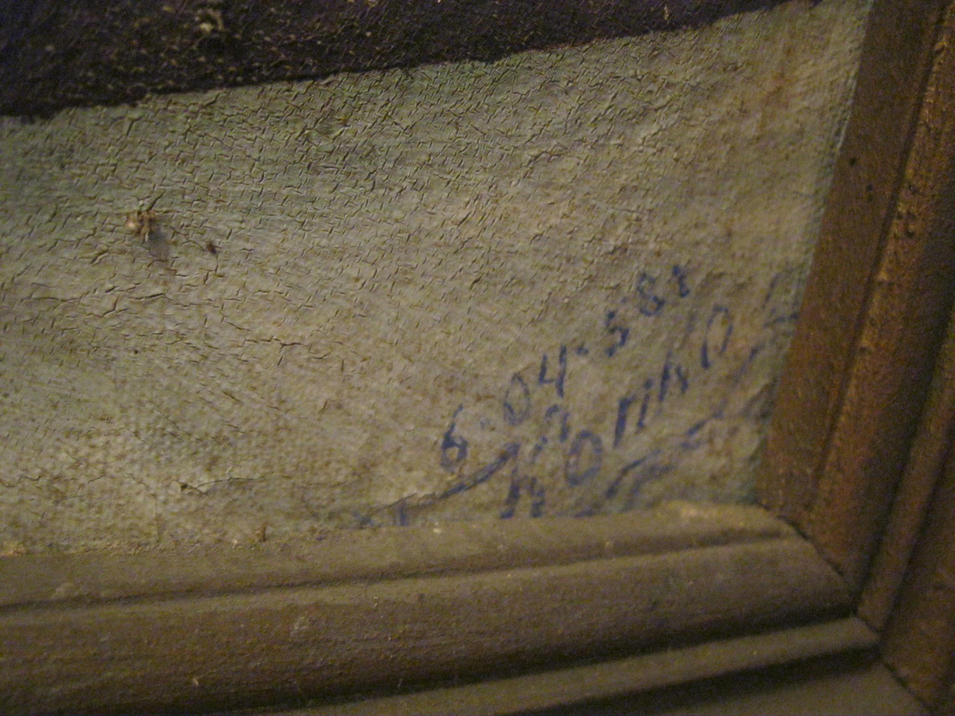 Автора конечно узнать невозможно. Реставрация: помыть с лица и желательно поработать с оборотом, убрать пыль и грязь, удалить старые заплатки на порезах и видимо других повреждениях основы. Восстановить красочный слой в этих местах придётся. Короче придать картинке свежий товарный вид, других достоинств к сожалению в ней нет. Может и найдёте начинающего реставратора на 200 д. Продавать за сколько... 500-600, не купит никто. Не могу представить будущего её владельца. Цену на такие вещи трудно назвать, их давно не покупают.