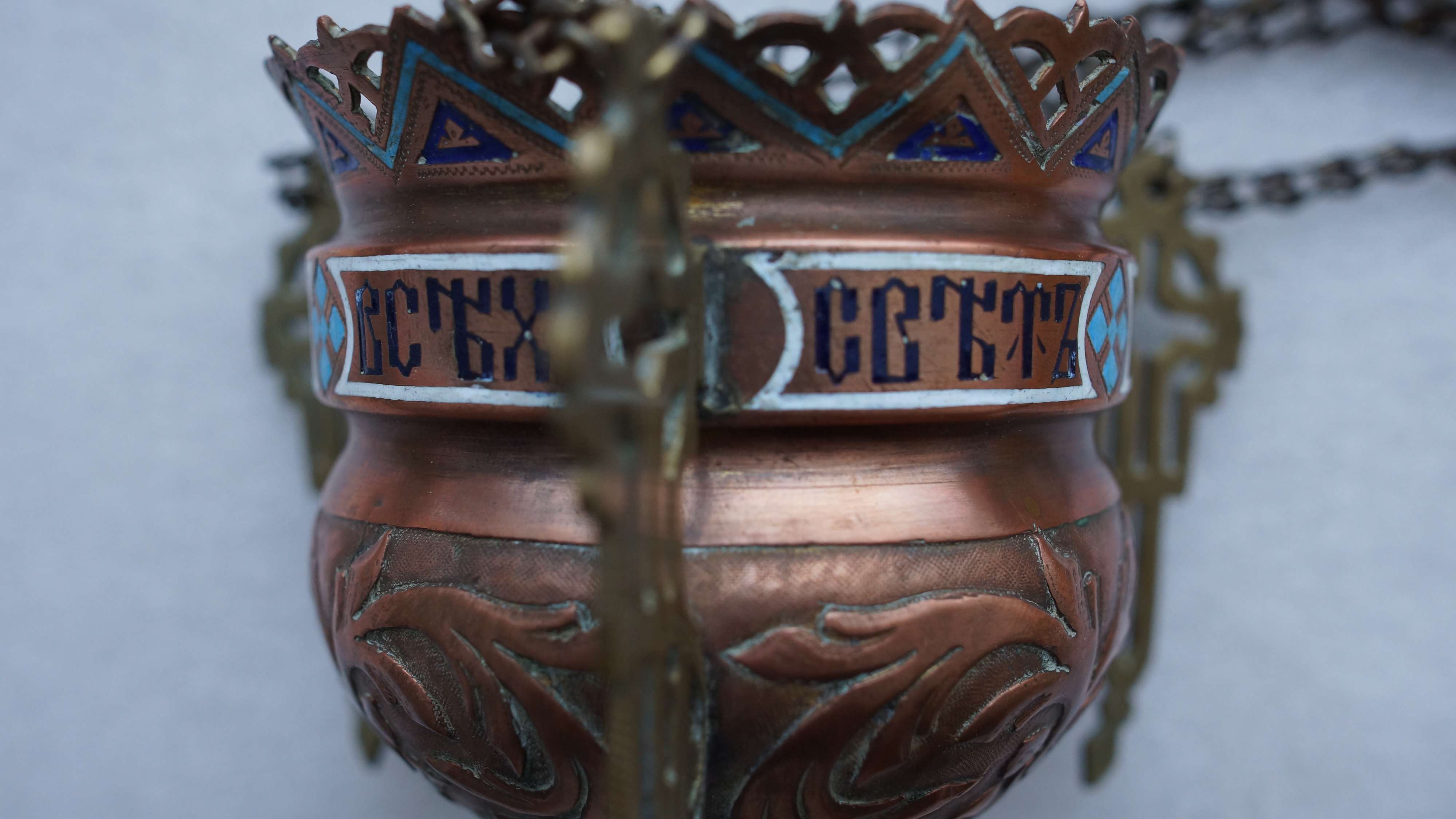 Лампада церковная, украшенная полихромными эмалями. Российская Империя, XIX век.