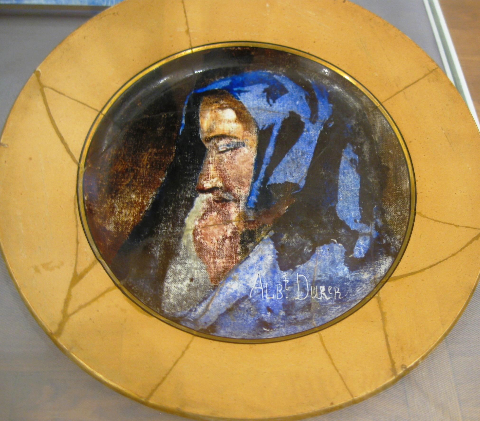 Также летом проходила выставка, посвященная юбилею А.П. Боголюбова, вот экспонаты, связанные с мастерской: Тарелка Альбрехт Дюрер, роспись В.Д. Поленова Кафель Витязь, роспись Н.Д. Дмитриева-Оренбургского. Напоминаю, что буду бесконечно благодарна за информацию по работам ДПИ керамической мастерской Егорова в Париже. |