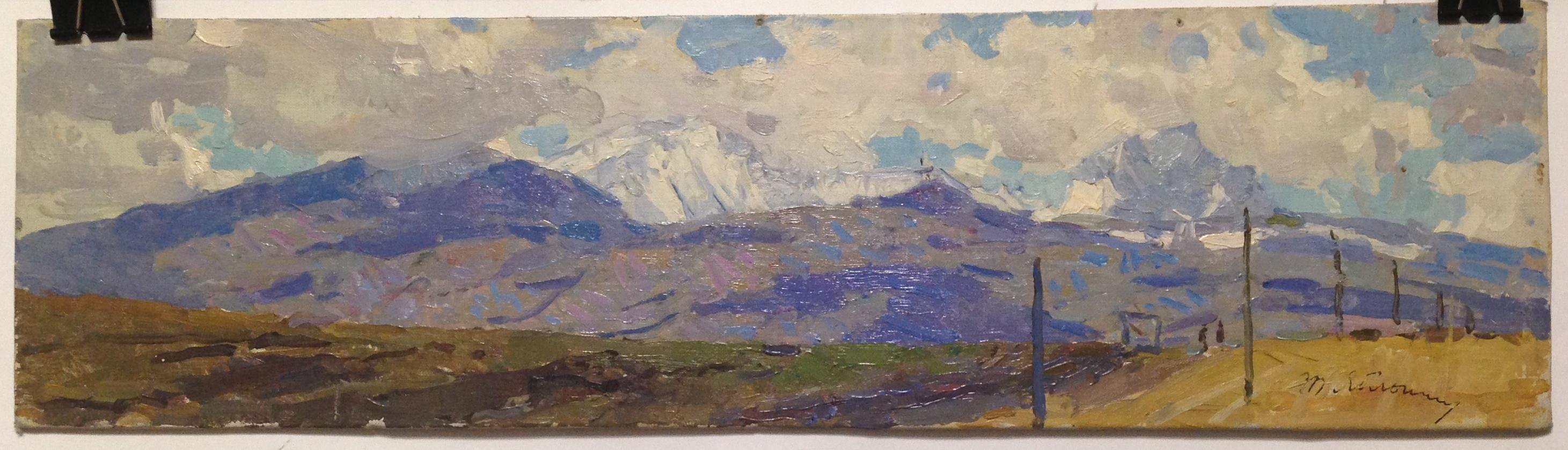Две работы пейзаж на холсте на клееном на картон, масло.