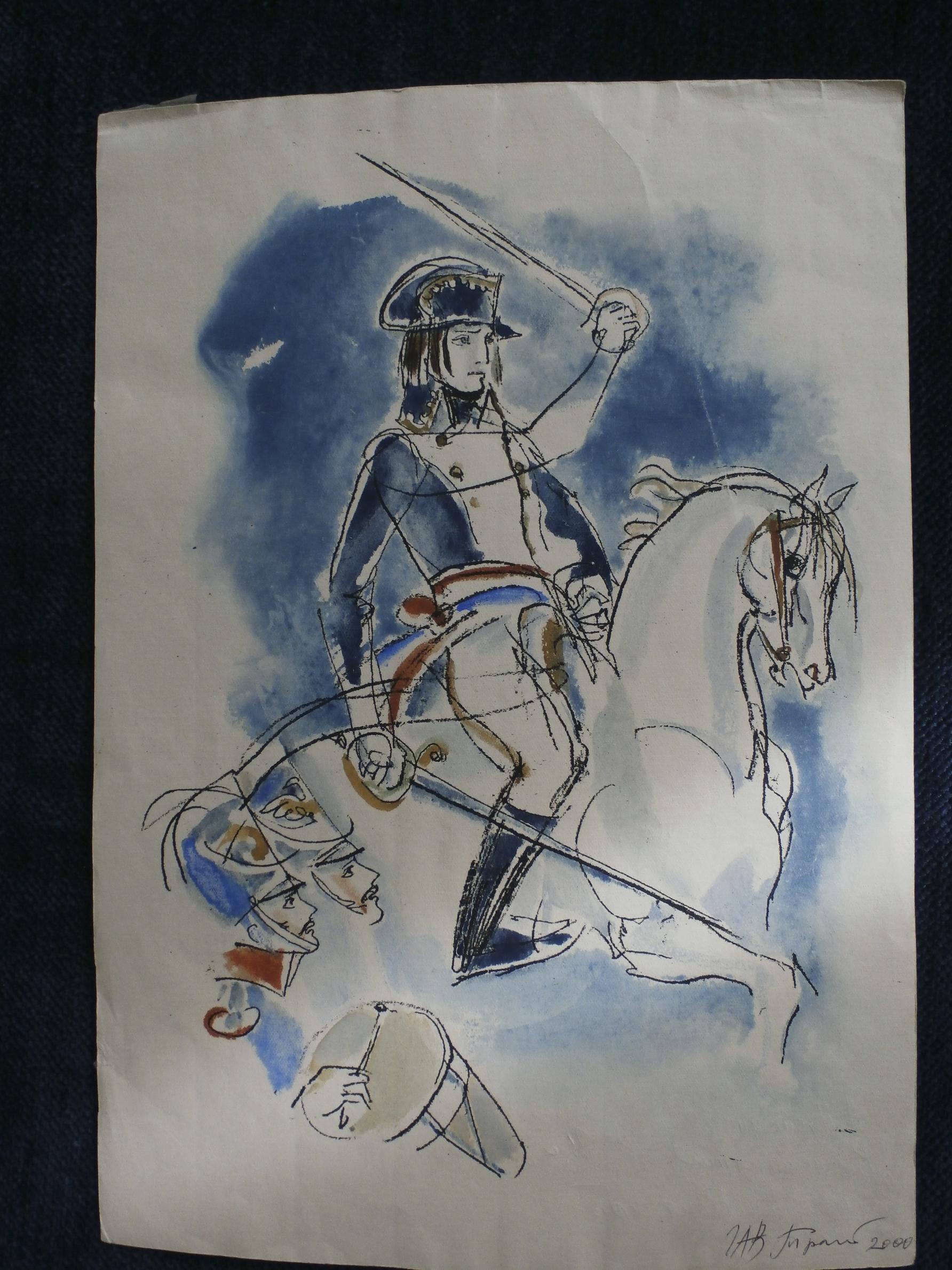 Продаю 7 иллюстраций ГАВ Траугот к стихотворению А.С. Пушкина "Воспоминания в Царском Селе", размер всех рисунков 295 х 210, подписаны, техника монотипия, акварель, 2000 г. Работы в Москве. Названия: Пушкин на лицейском экзамене, Молодой Бонапарт, Жуковский читает стихи русским офицерам в 12 году, Наполеон, Екатерина с придворными, Александр в Париже, Суворов.