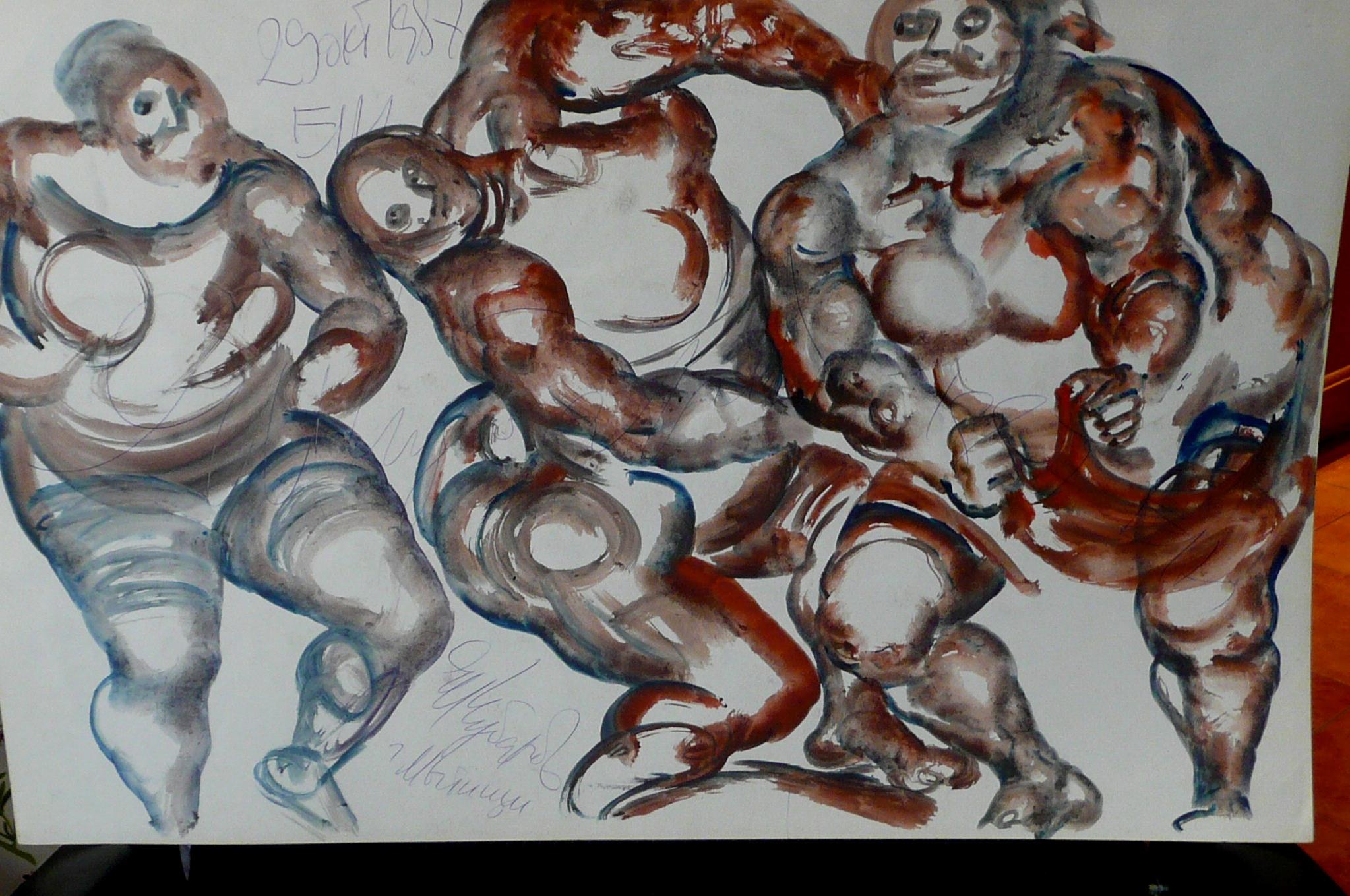 Продам цветную, двухстороннюю работу Евгения Чубарова: бумага,см.техника, 40х60см.1987г.