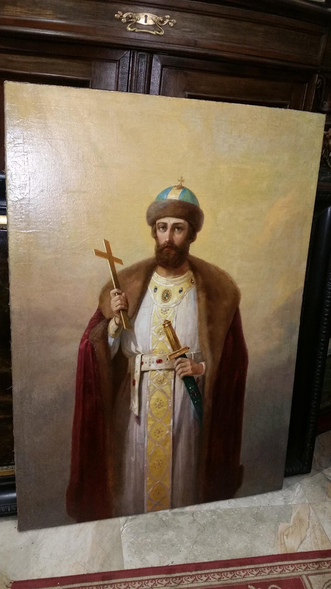 Была куплена картина 115х82 см Под ней оказалась другая Подскажиет пожалуйста кто изображен ? Возможно ли определить автора ? |