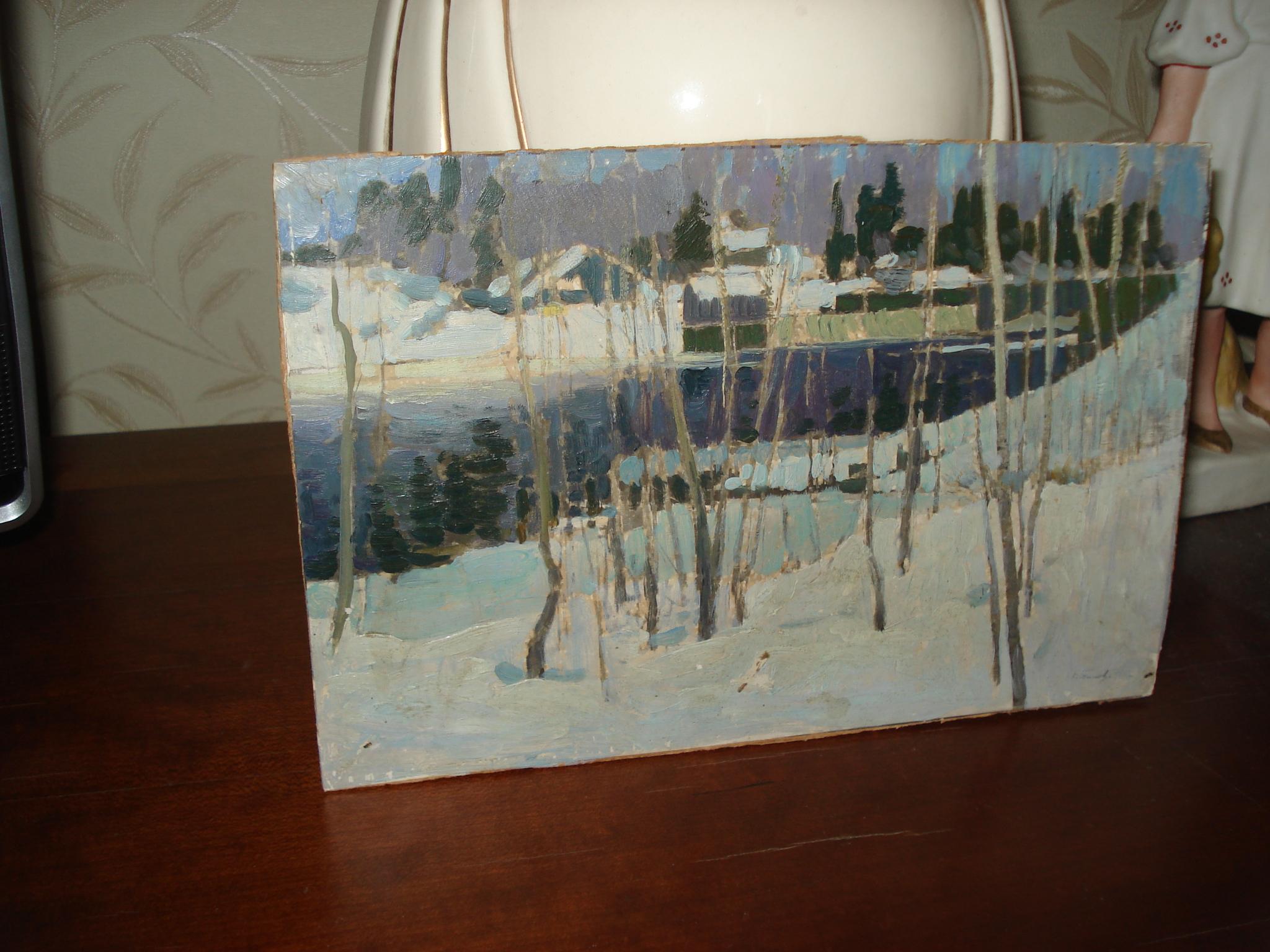 Тимков Николай Ефимович "Зимний пейзаж" 1950-е гг. 14Х21 картон,масло