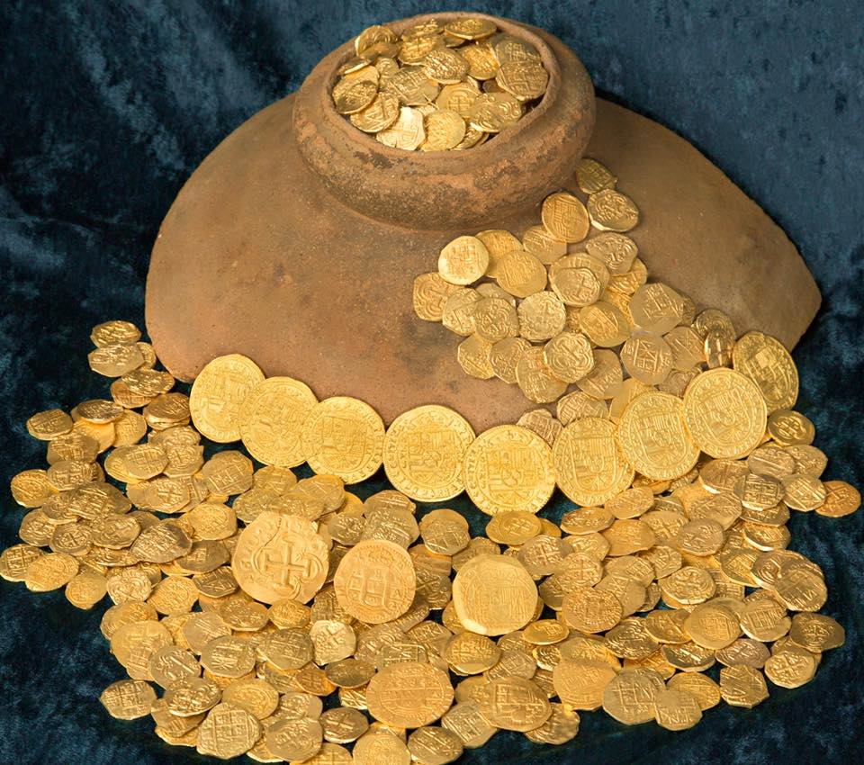 Эта находка была сделана еще в июне, однако сообщение об этом приурочили к 300-летней годовщине гибели испанской флотилии, сообщил Брент Брисбен, представитель компании 1715 Fleet — Queens Jewels LLC, которая обладает правами на обломки флотилии. В 1715 году одиннадцать испанских галеонов, следовавших из Гаваны в Испанию, пошли ко дну у берегов Флориды из-за мощного урагана. Документы свидетельствуют, что груз на этих кораблях оценивается в четыреста миллионов долларов, из них ценности на сумму 175 миллионов долларов уже были найдены. Компания Брисбена приобрела права на участок, где затонула флотилия, в 2010 году и позволяет желающим искать сокровища по договору субподряда. Этим воспользовалась семья Шмиттов — Эрик, его жена Линдси, сестра Хилари, отец и мать Эрика - Рик и Лиза, которые ведут охоту на сокровища с собственного спасательного судна Aarrr Booty. Эрик Шмитт обнаружил клад на глубине 4,5 метров у побережья Форт-Пирса/Fort Pierce, примерно в 210 км от Майами. Поднятые сокровища включают 51 золотую монету и 12-метровую золотую цепь. Среди монет имеется отличный образец реала, отчеканенного в 1715 году для испанского короля Филиппа V. В мире существует всего несколько таких монет. По закону, 20% клада перейдет в собственность штата Флорида, часть образцов будет выставлена в музее. Остаток поделят между собой компания Брисбена и семья Шмиттов. Между тем, это уже третья похожая находка для охотников за сокровищами: удача уже дважды улыбалась им — в 2014 и 2013 годах. Под "Весёлым Роджером" за золотом испанских галеонов. |