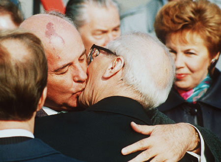 Saw and old black and white photo of meetings of Brezhnev and Honecker almost one to one with its redrawing. |
