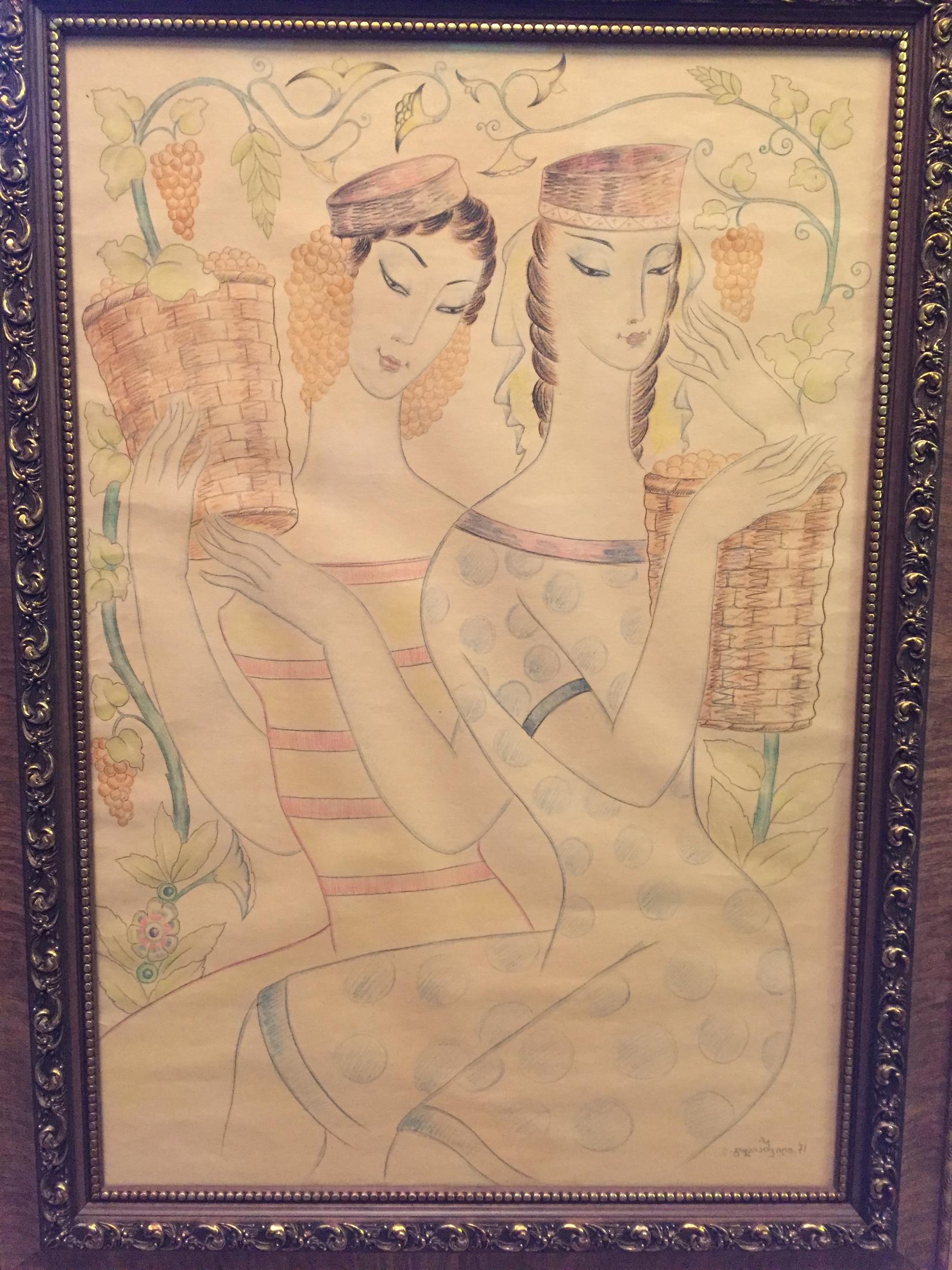 Народный художник СССР (1972). Герой Социалистического Труда (1976). Лауреат Государственной премии Грузинской ССР им. Руставели (1965, первое награждение). Ладо Гудиашвили родился в Тифлисе в 1896 году. В возрасте 14 лет поступил в художественное училище, после его окончания работал учителем рисования в школе. Между 1915 и 1918 годом познакомился с творчеством Нико Пиросманишвили, оказавшим глубочайшее влияние на его собственную художественную манеру. В 1919 году отправился в Париж, в то время фактически бывший центром мирового искусства. Гудиашвили прожил в Париже шесть лет, часто выставляя свои работы. Состоял в дружеских отношениях с такими художниками, как Пабло Пикассо, Морис Утрилло, Амедео Модильяни, Игнасио Сулоага, Jeanne Hallen, Михаил Ларионов и Наталия Гончарова. Выставки Гудиашвили прошли не только в Париже, но и в Марселе, Лионе и Бордо, а позже в Лондоне, Риме, Брюсселе, Амстердаме, Берлине и Нью-Йорке. В 1925 году вернулся в Тбилиси. В январе 1937 награжден орденом «Знак почета». В 1945 году Гудиашвили расписал алтарь церкви Кашвети в Тбилиси. За это он был в 1946 г. исключён из ВКП(б) и уволен с работы из художественной академии в Тбилиси, где он преподавал с 1926 года. Его произведения ещё при жизни были выставлены в музеях, включая Государственный музей искусства народов Востока в Москве и Государственный музей искусств Грузии в Тбилиси. Ладо Гудиашвили умер в июле 1980 года в возрасте 84 лет. В Тбилиси открыт дом-музей Ладо Гудиашвили. Девушки, собирающие виноград Бумага, графитный и цветные карандаши 74х50,5 Работа происходит из собрания В.А. Дудакова Все пожелания и предложения в лс. Last edited by Art_beauty; 24-02-2016 at 23:39. |